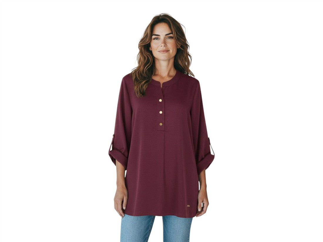 Con un estilo sofisticado y femenino, la blusa AKW-7695 de ANN KLEIN es ideal para cualquier ocasión casual. Confeccionada en textil de alta calidad, esta prenda presenta un diseño camisero con manga 3/4 y elegantes botones dorados, que aportan un toque de distinción. Disponible en tallas 28 a 38, esta blusa se adapta perfectamente al guardarropa de la mujer moderna que busca comodidad sin perder estilo. Combínala con tus pantalones o faldas favoritas para un look impecable.