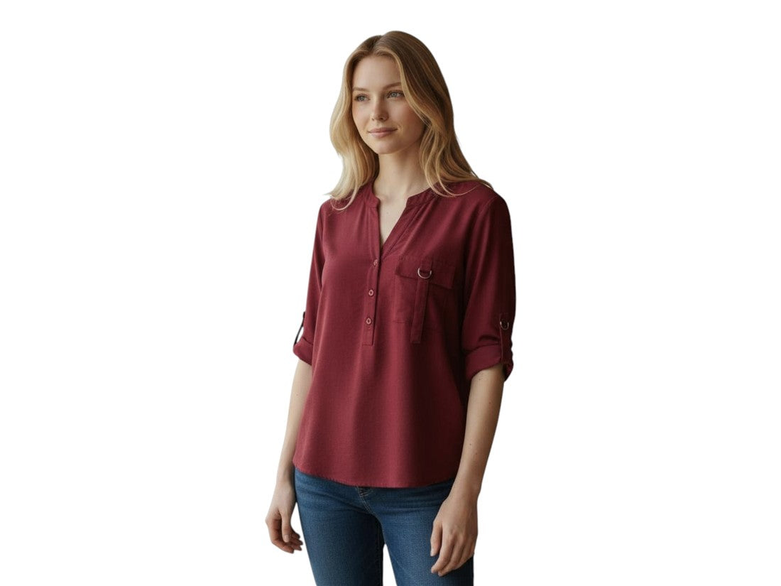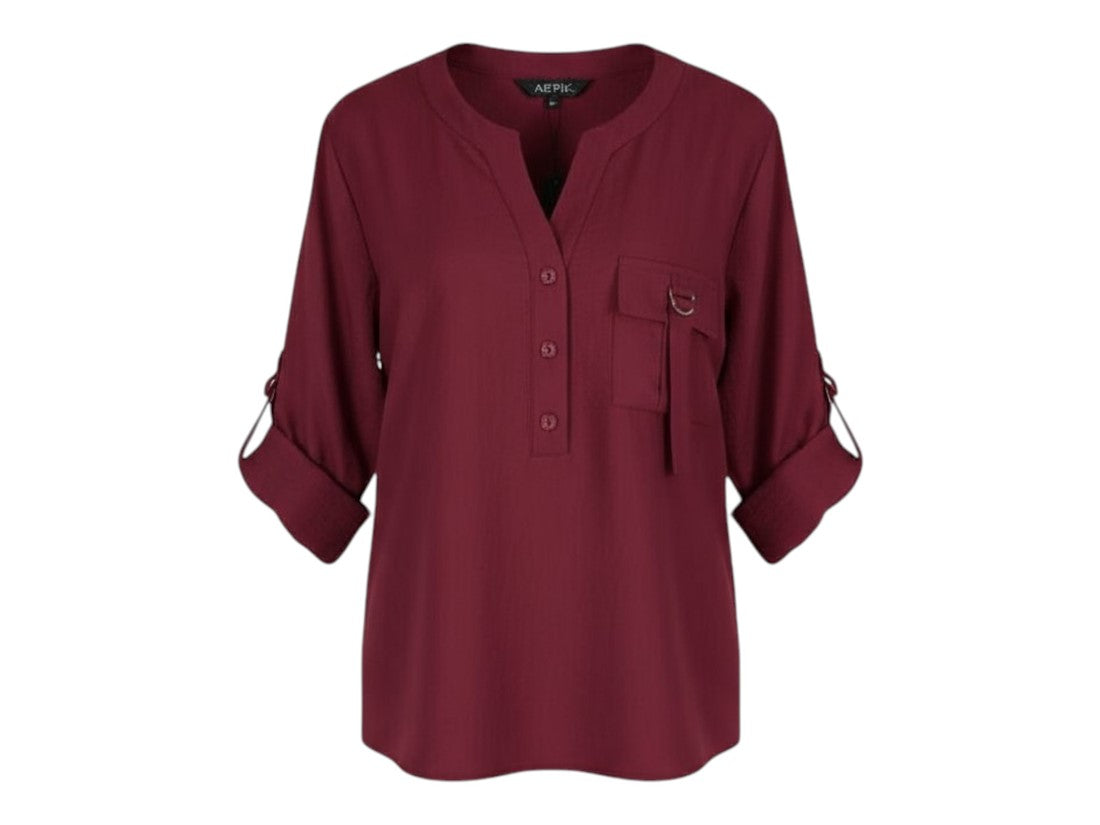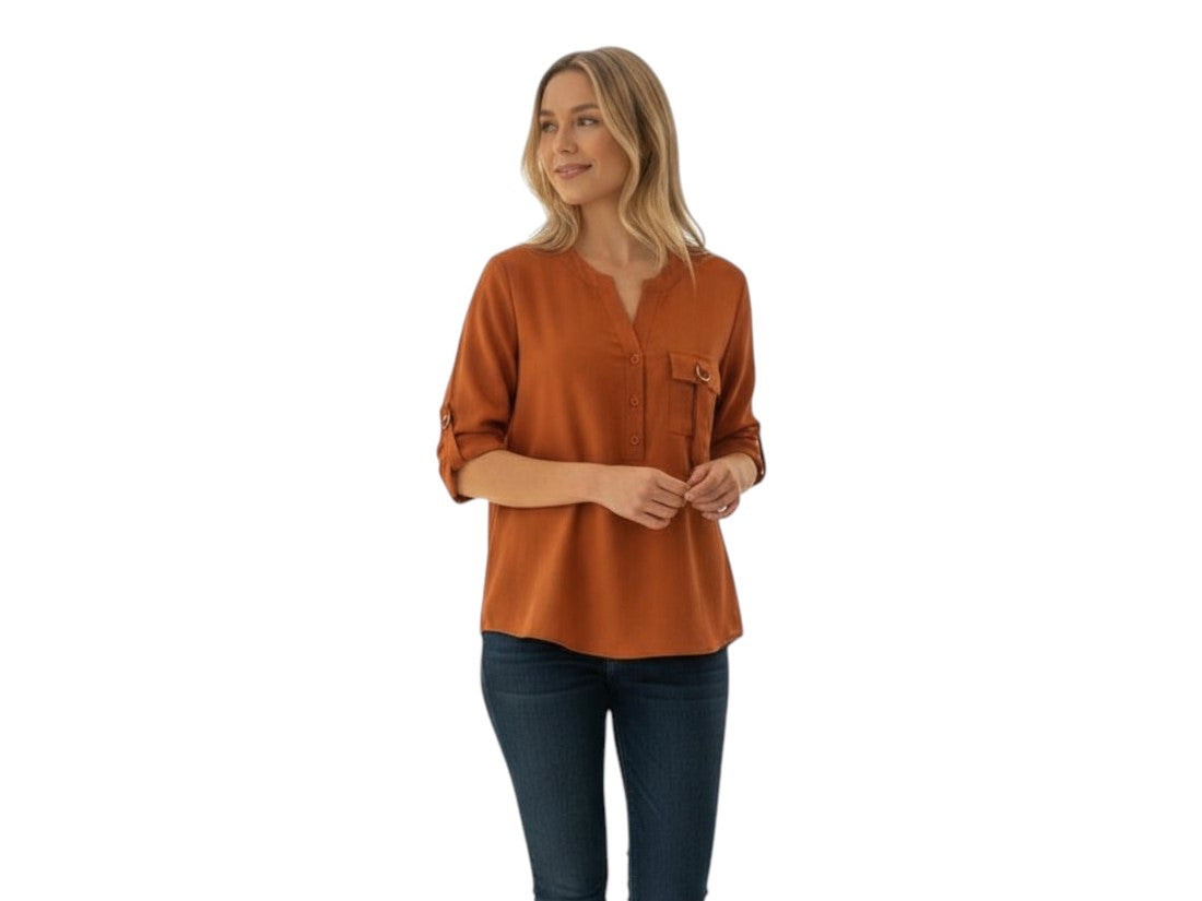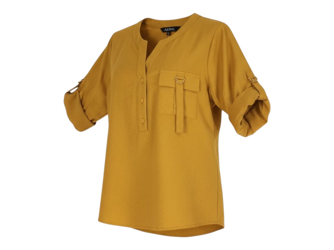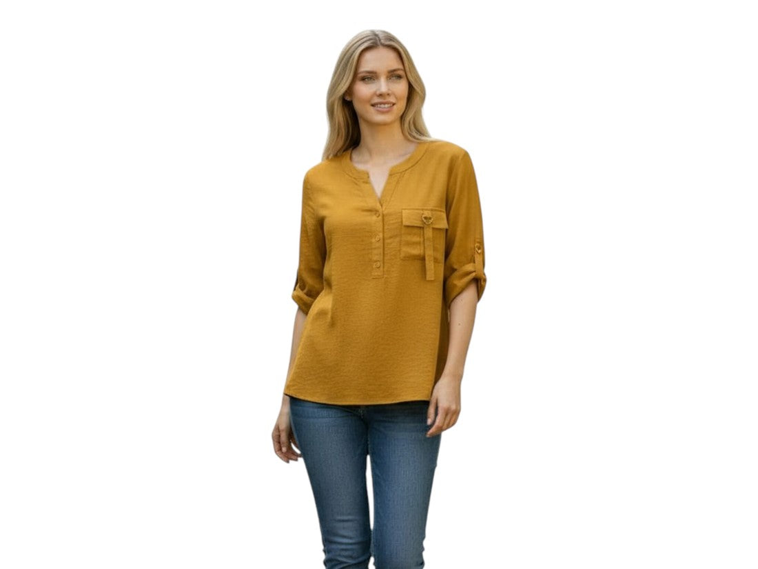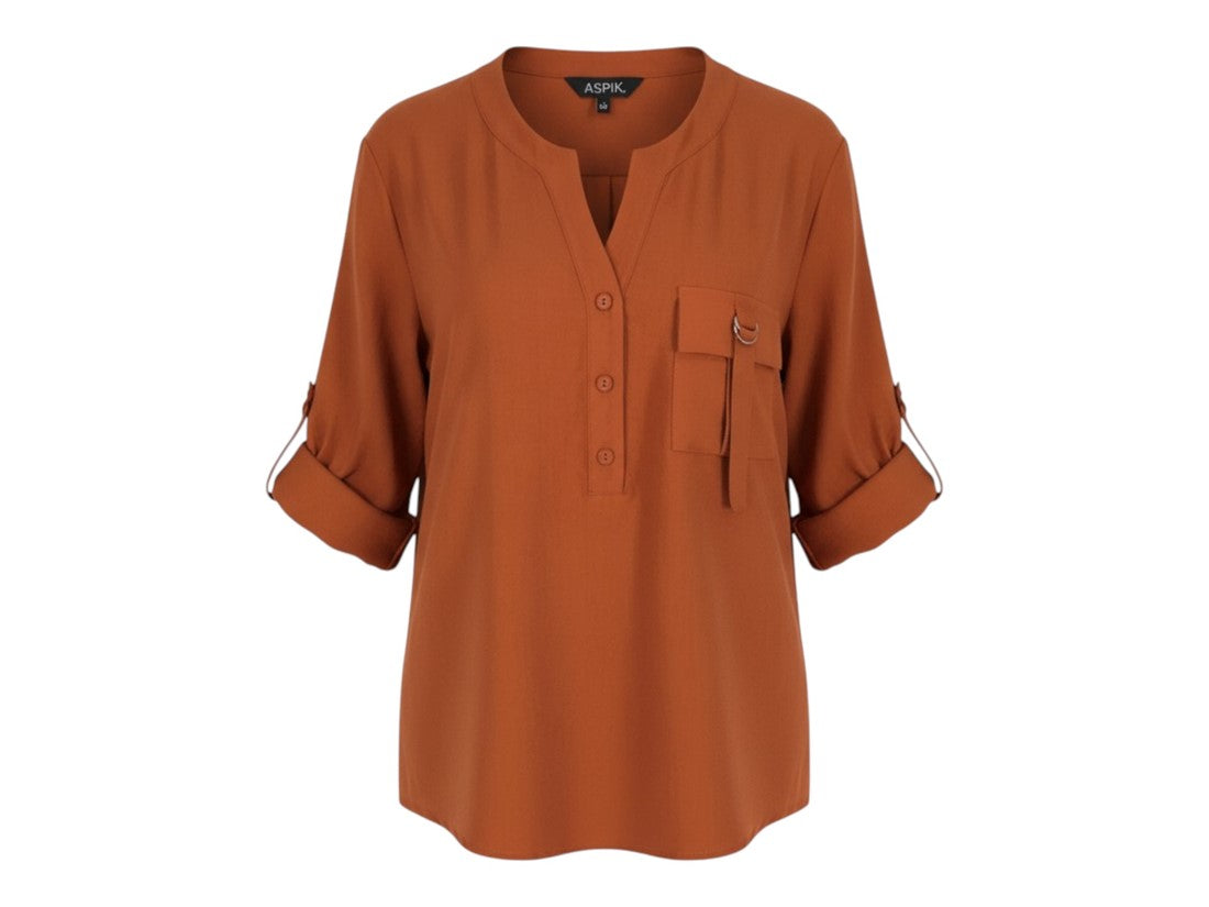 Blusa casual Aspik de mujer con cuello v y manga 3/4, ideal para lucir elegante y cómoda.