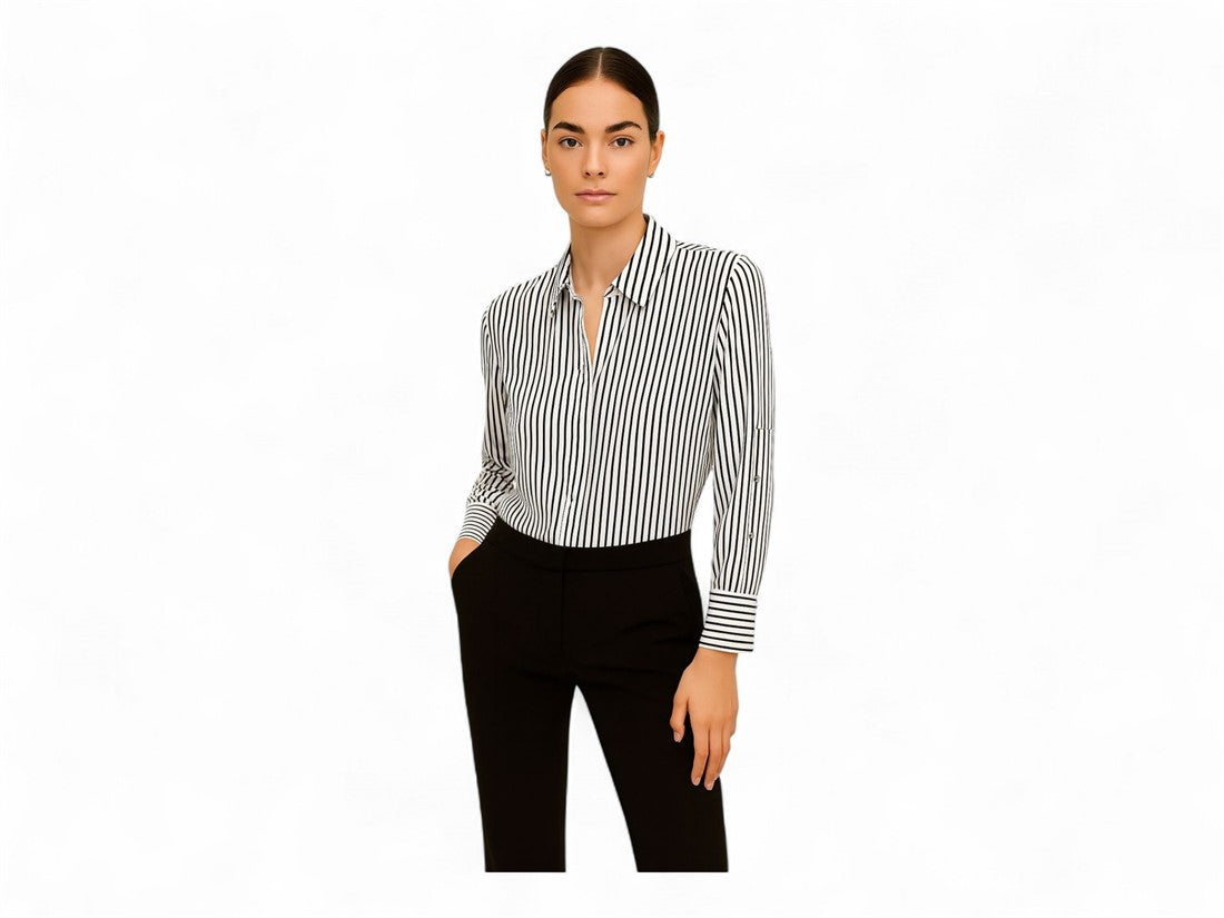Blusa casual de manga larga a rayas para mujer LO-FASSI, estilo moderno y versátil.