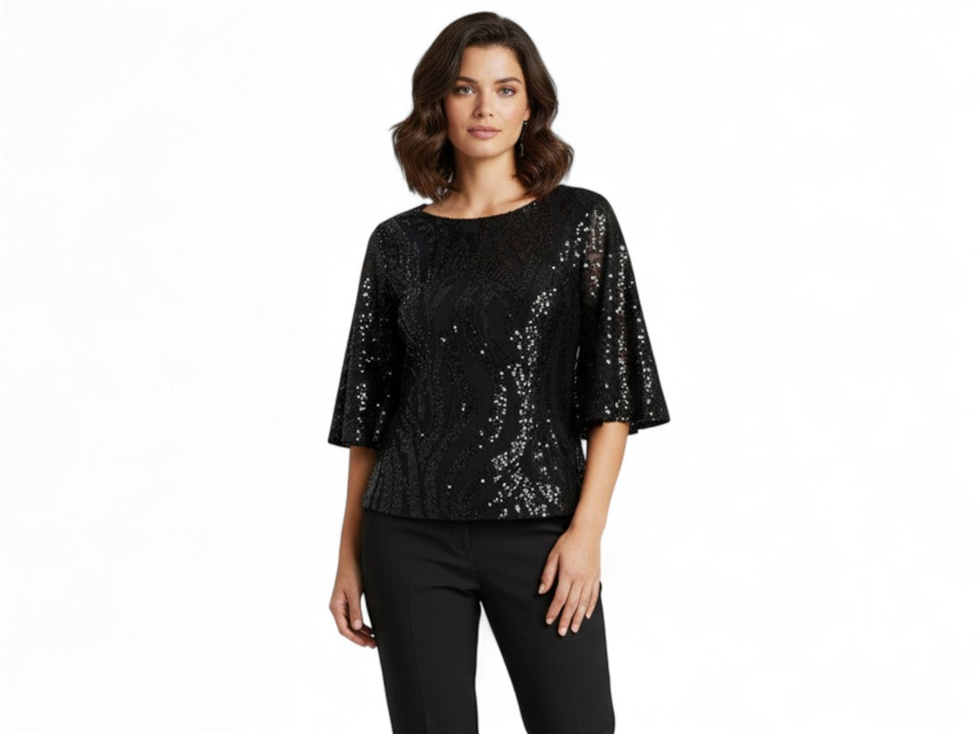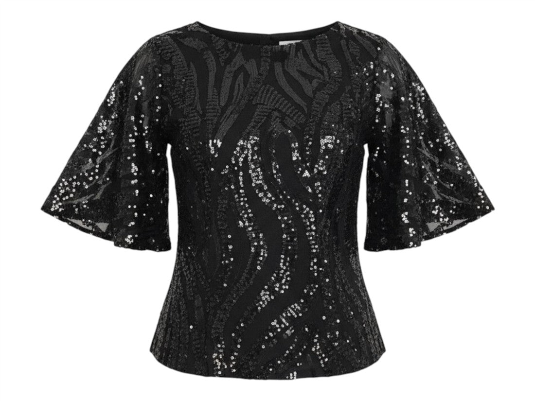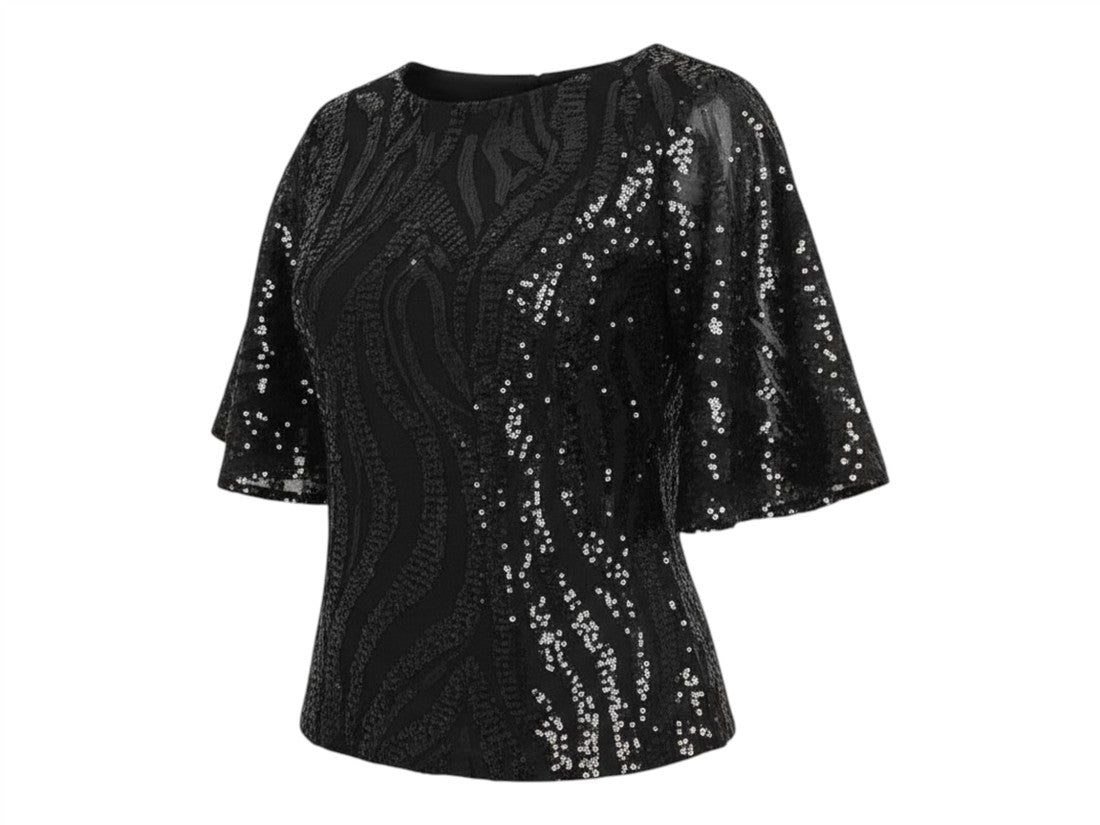 Brilla en tu fiesta con la blusa Nikki, deslumbrante con lentejuelas. Ideal para la mujer moderna.