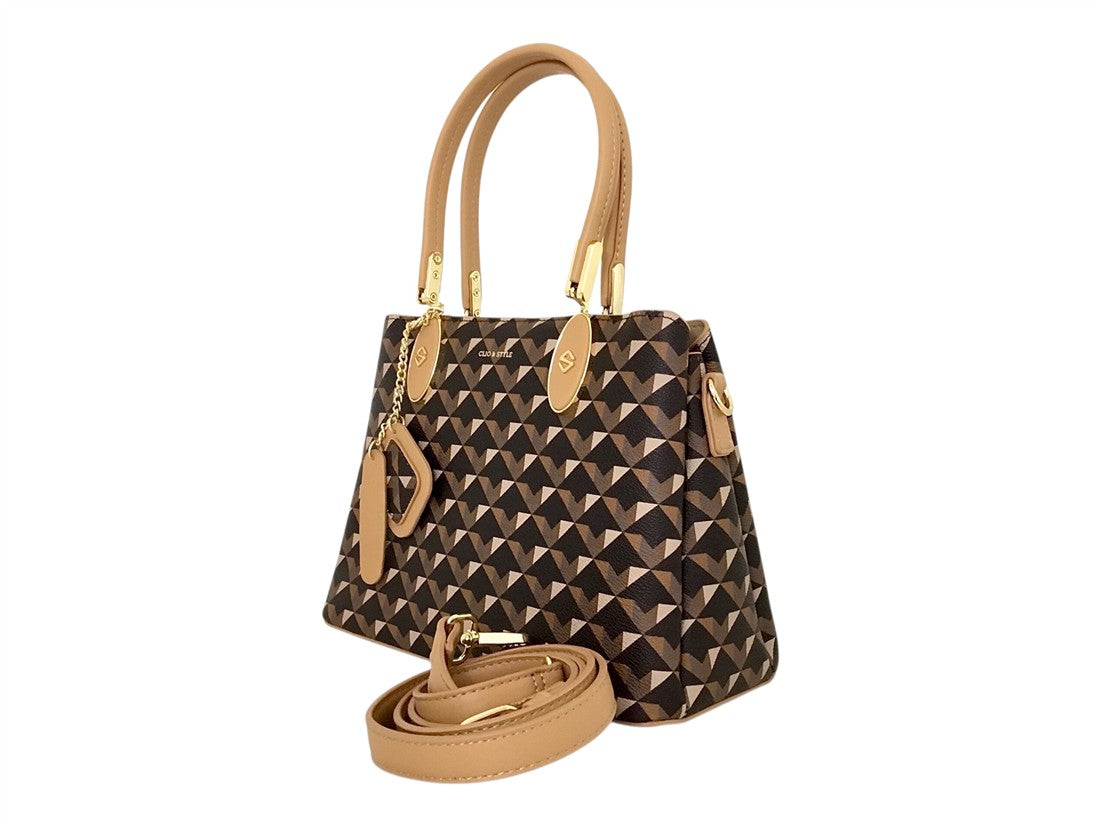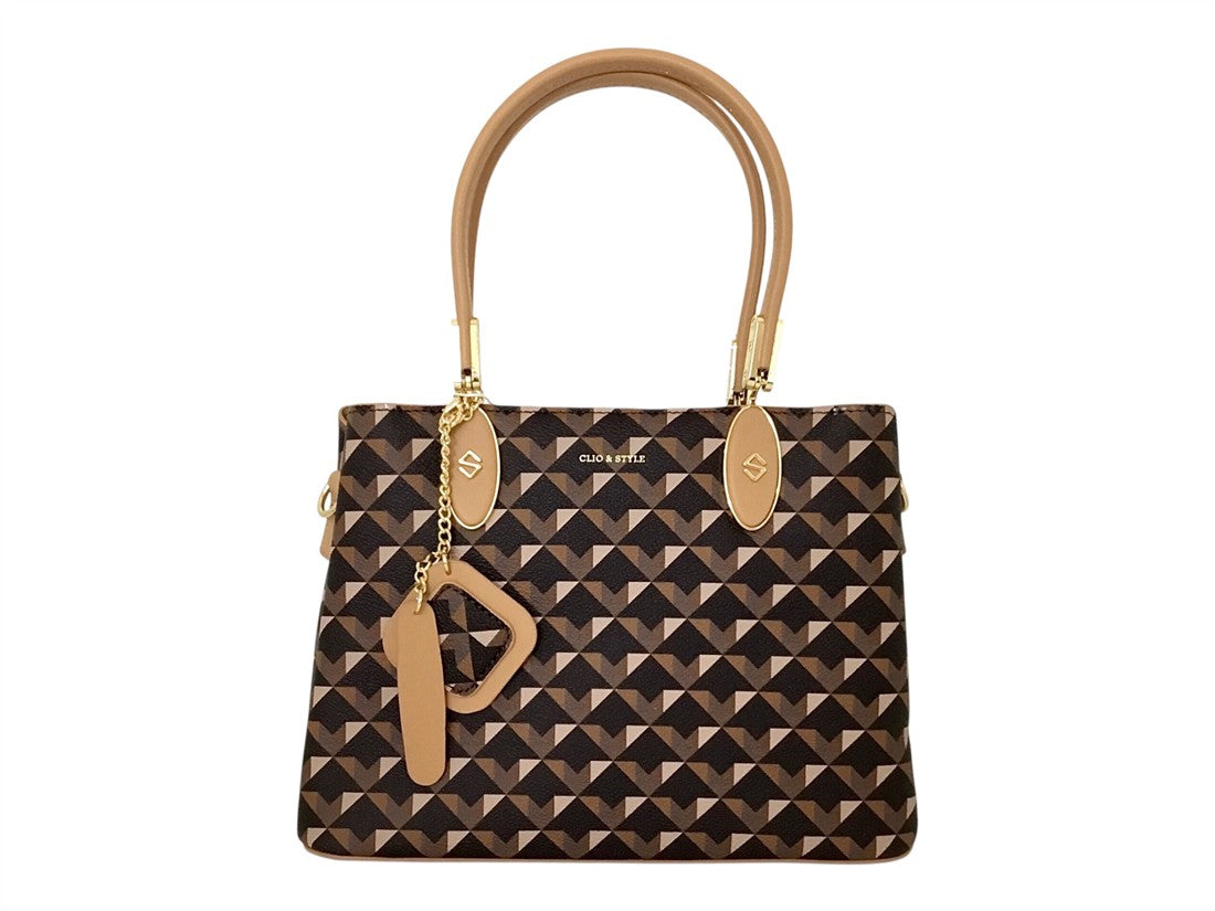 Bolsa casual CLIO & STYLE para dama, tipo baguette o tote pequeña con elegante estampado.