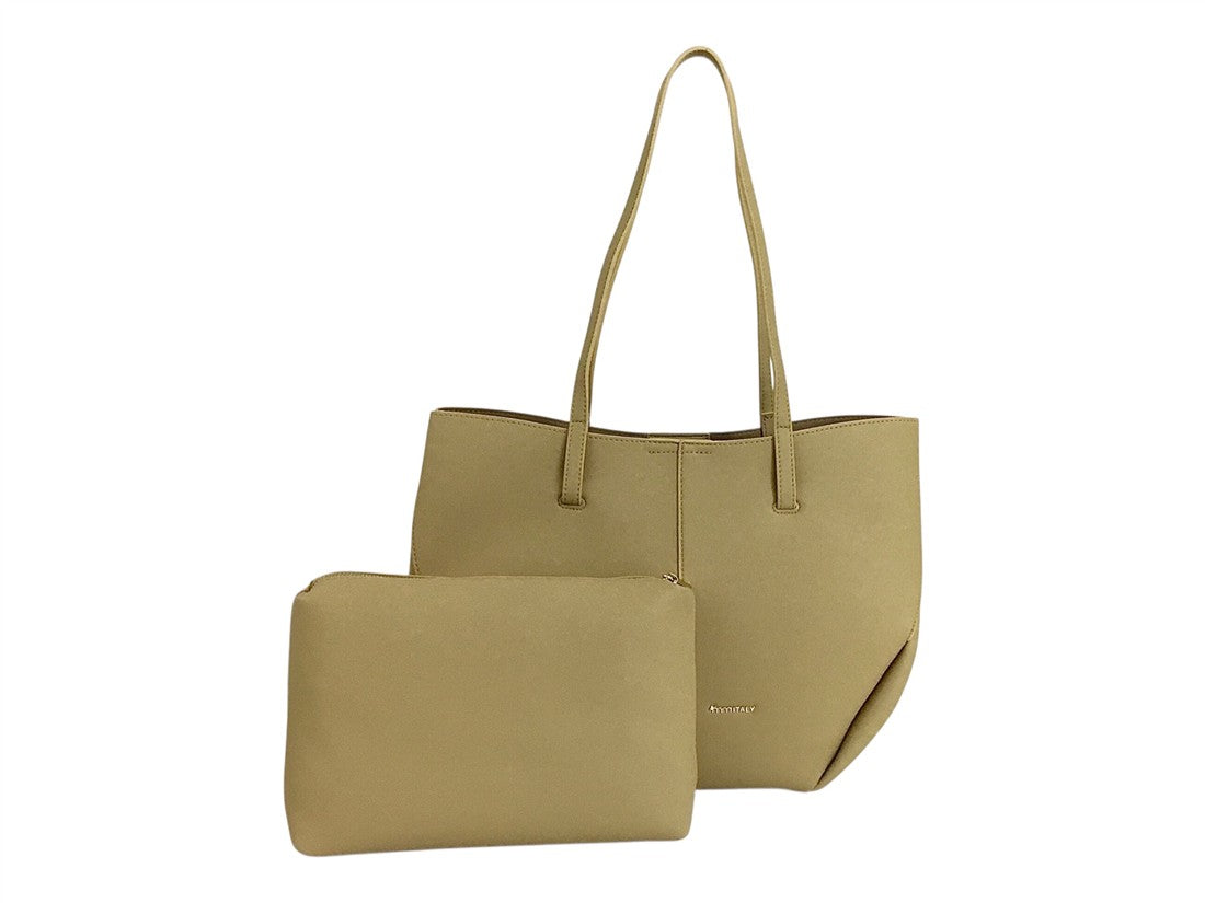 Set de bolso tipo tote y pouch casual para dama, asas de hombro estilizadas, MM Italy.