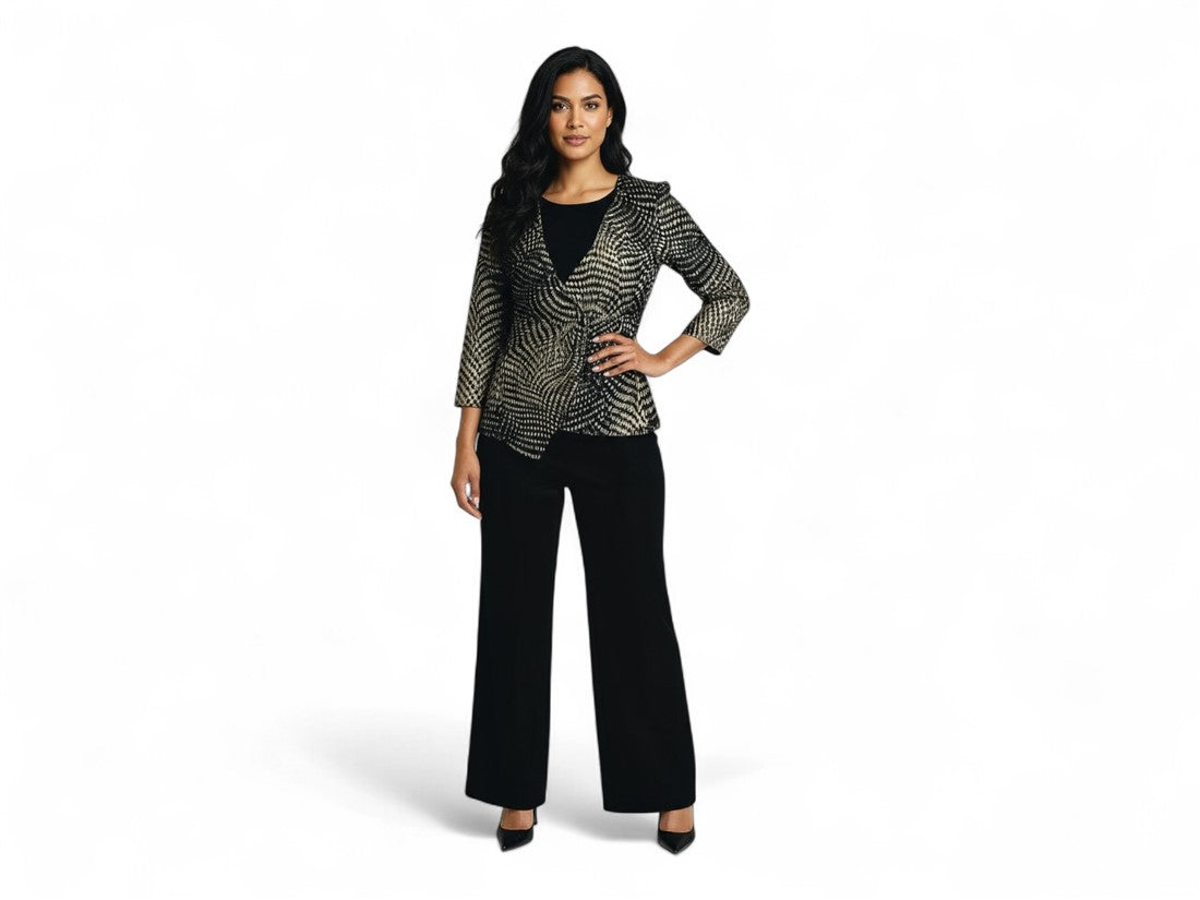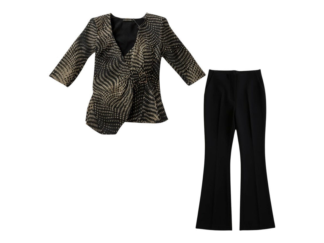 Descubre la elegancia casual con el conjunto de 2 piezas de KAREN KEIN. Este coordinado para dama combina una blusa estampada con puntos metálicos, ideal para agregar un toque sofisticado a tu día a día. Confeccionado en un material textil de alta calidad, disponible desde la talla 0 hasta la 25, te ofrece comodidad y estilo sin esfuerzo. Perfecto para mujeres que buscan destacar con un look moderno y versátil.