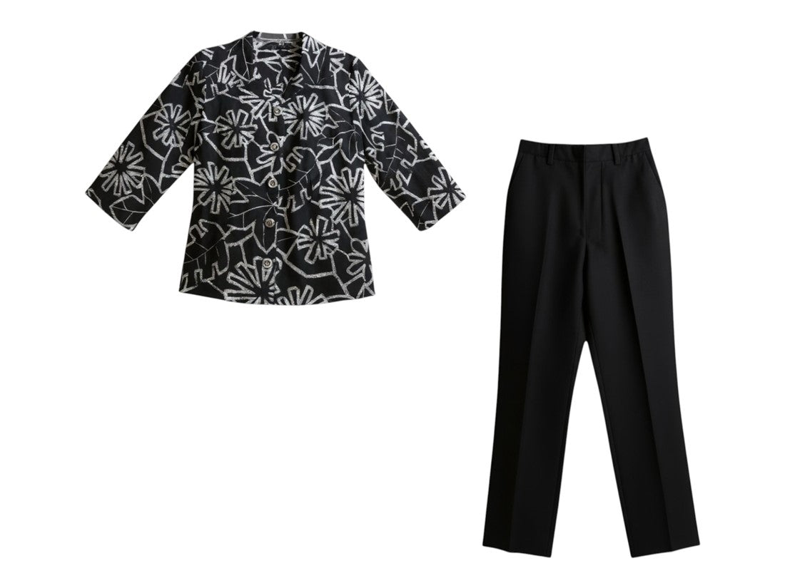 Coordinado de vestir para dama KAREN KEIN: blusa estampada manga 3/4.