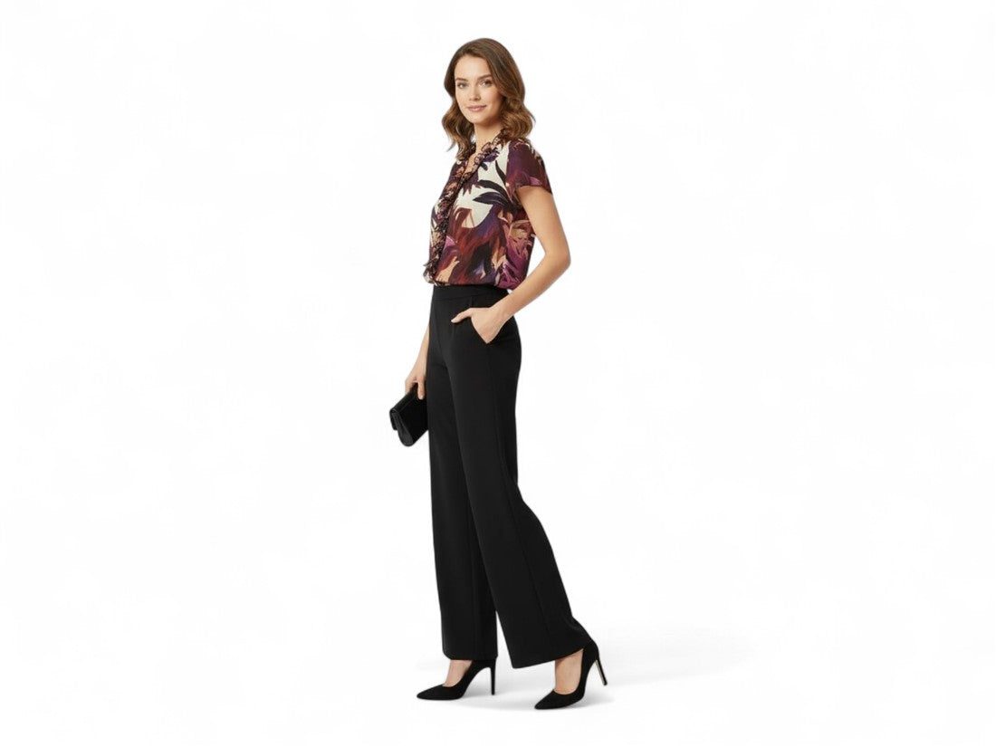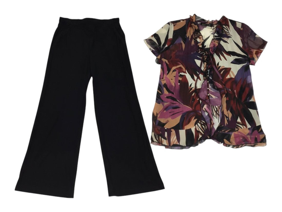 Conjunto casual para dama KAREN KEIN, incluye pantalón y blusa estampada de manga corta.