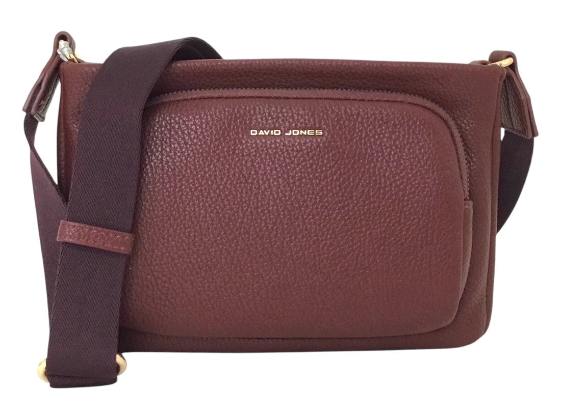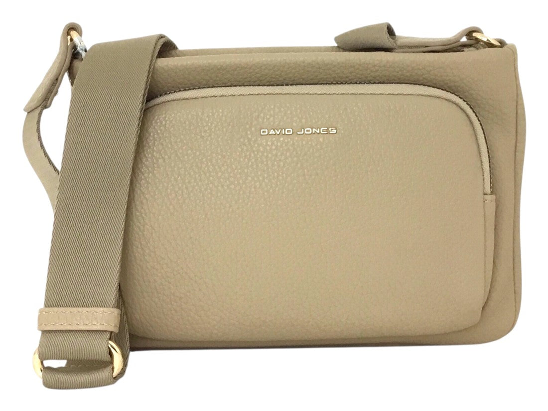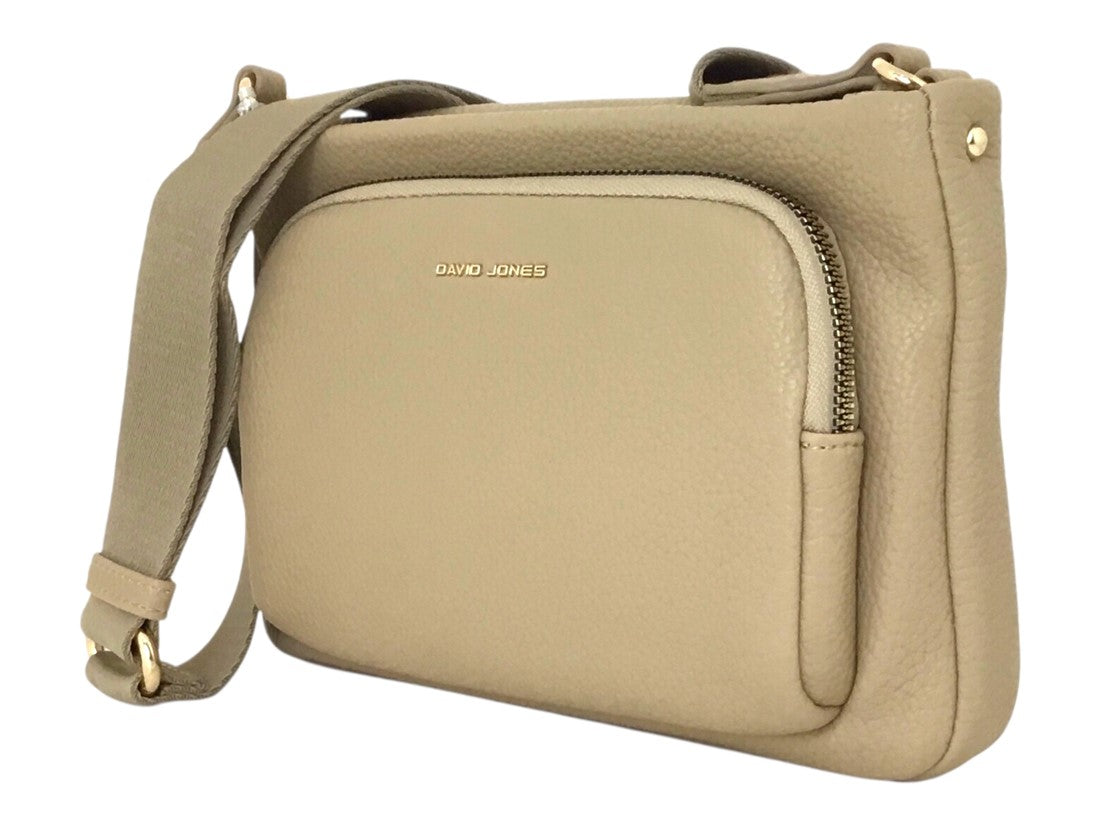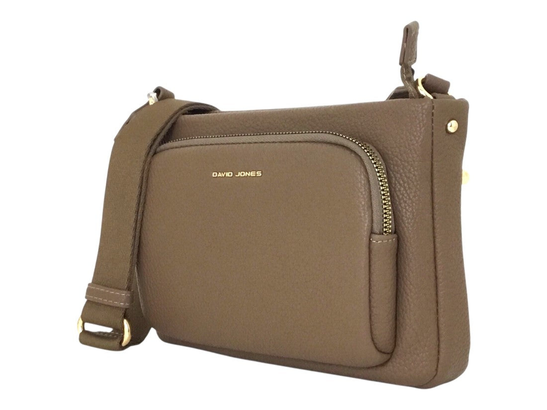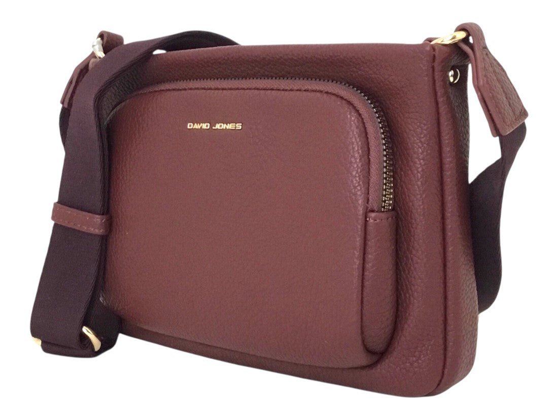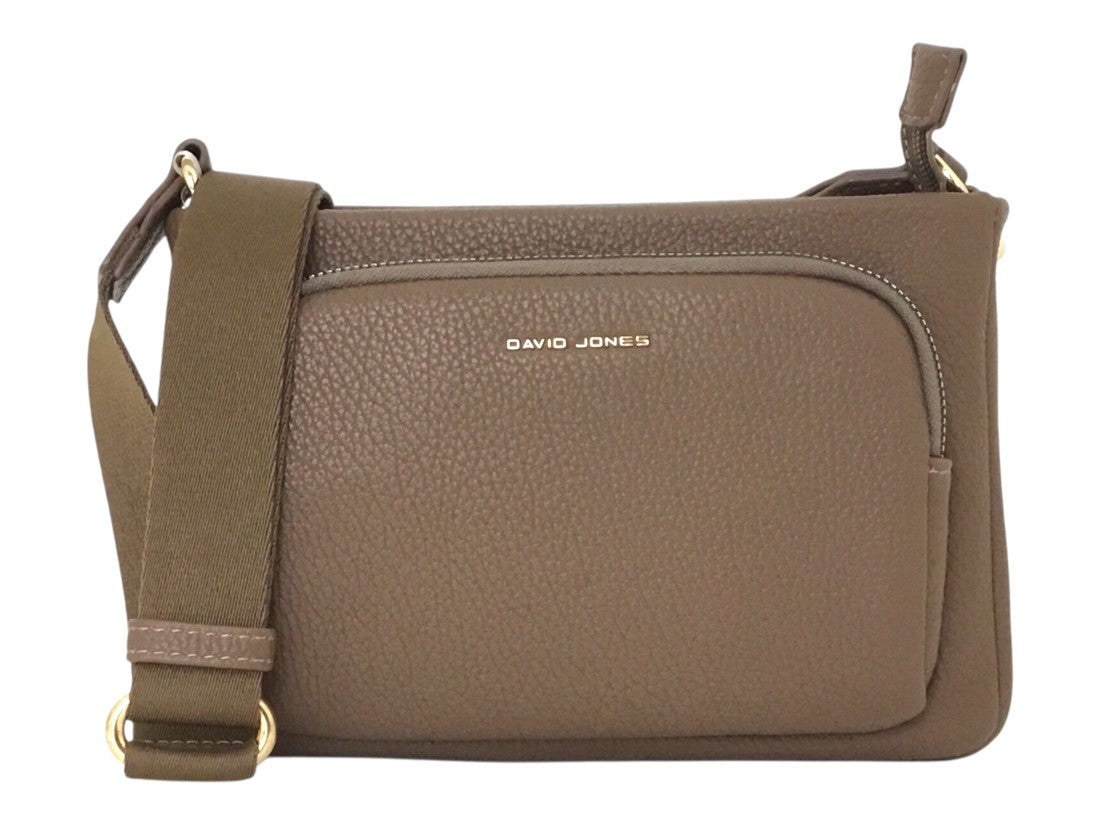 Bolsa casual David Jones, estilo crossbody para mujer, con correa ajustable y tres compartimentos.