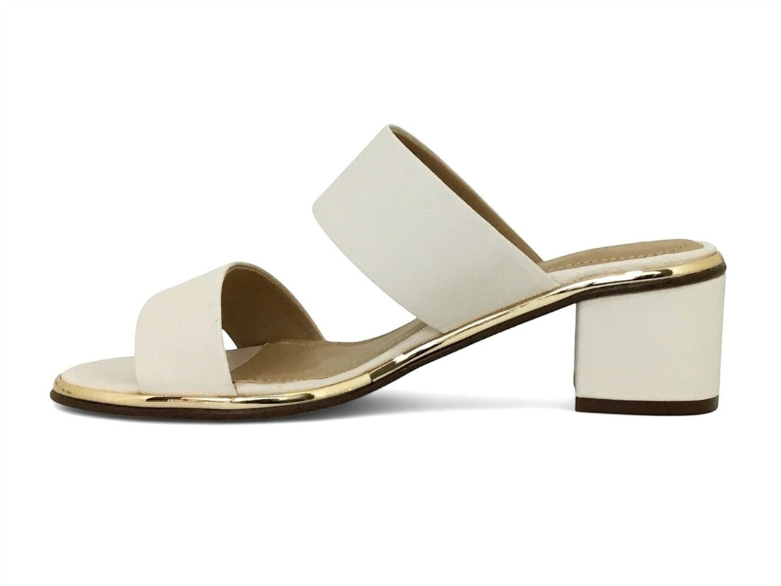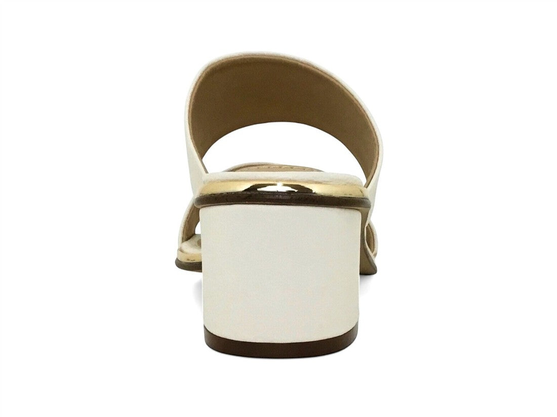 SANDALIA TACON CUADRADO SISTEMA DESTALONADO DISEÑO CON TIRAS Y DETALLE DORADO