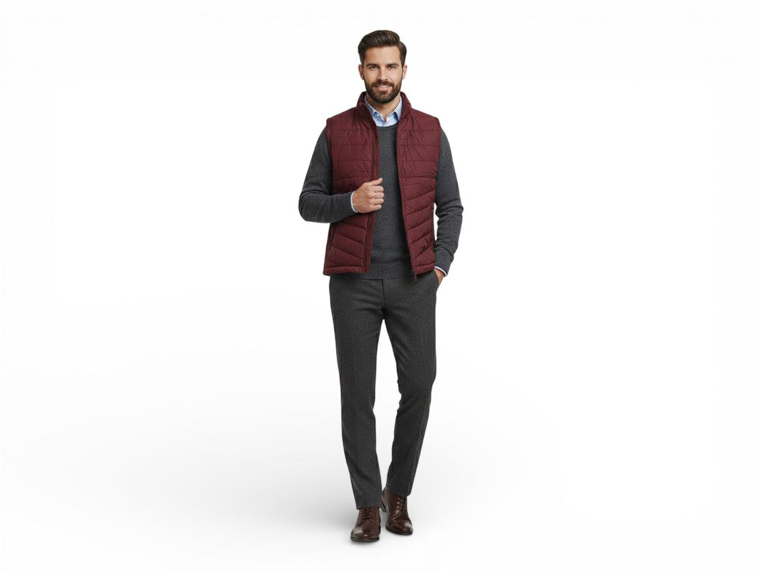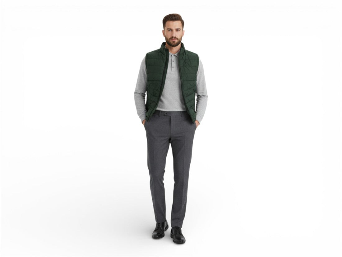 Chaleco Giovanni Gali capitonado, combina elegancia y comodidad en un estilo casual.