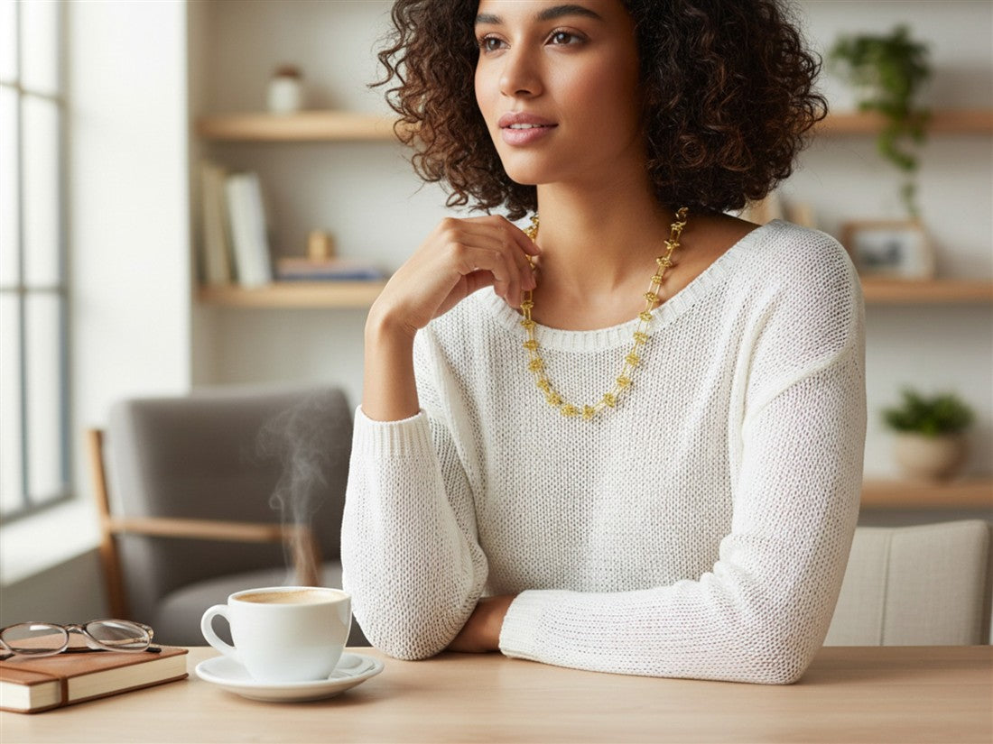 Collar casual de ROELA para dama con eslabones alargados y detalles en baño de oro