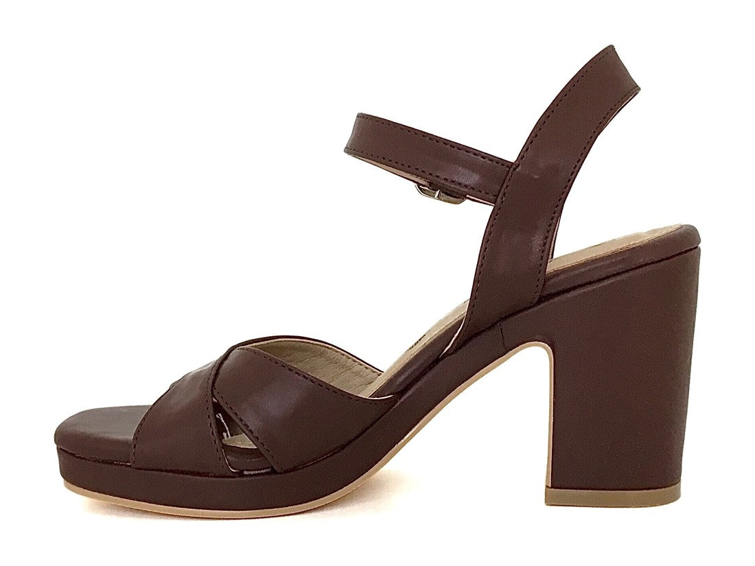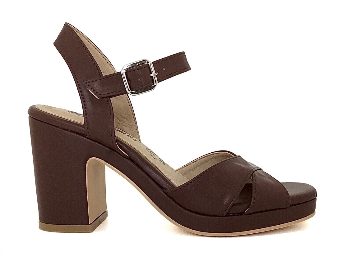 Sandalia casual para mujer de Melissa Garcia con tacón grueso, diseño cruzado y hebilla ajustable.