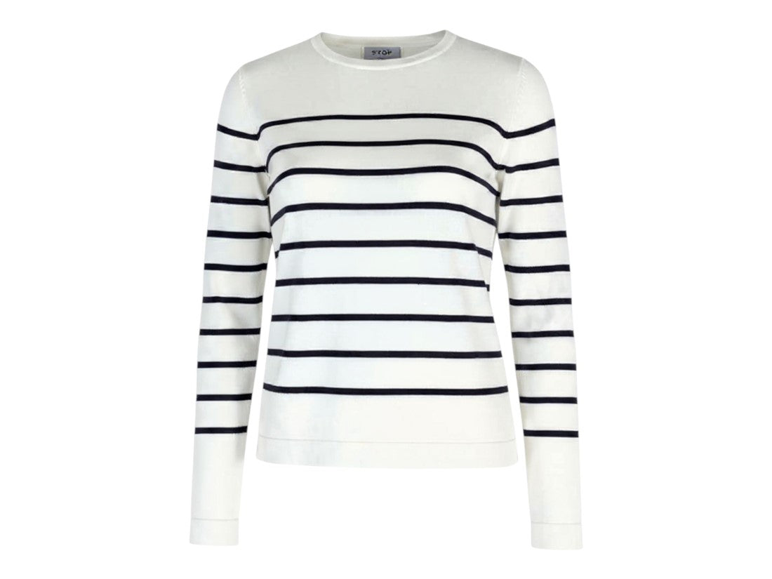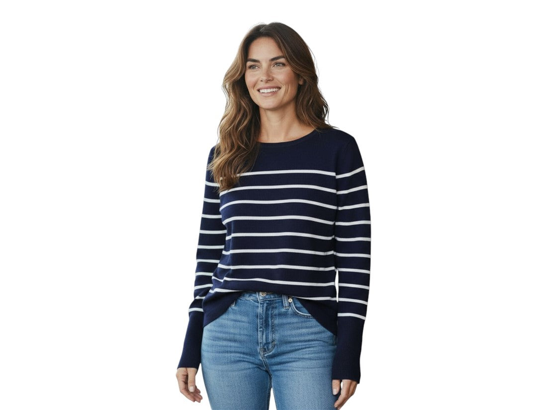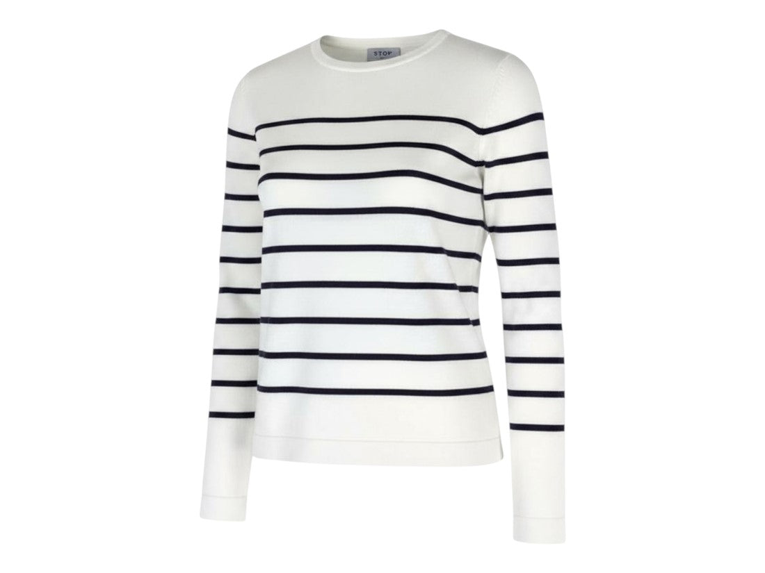 Suéter de rayas casual para dama, cuello redondo, marca STOP.
