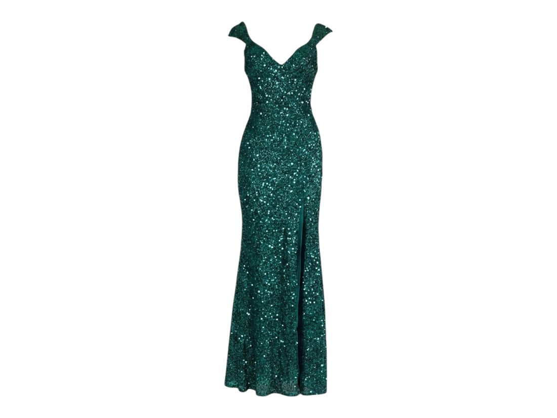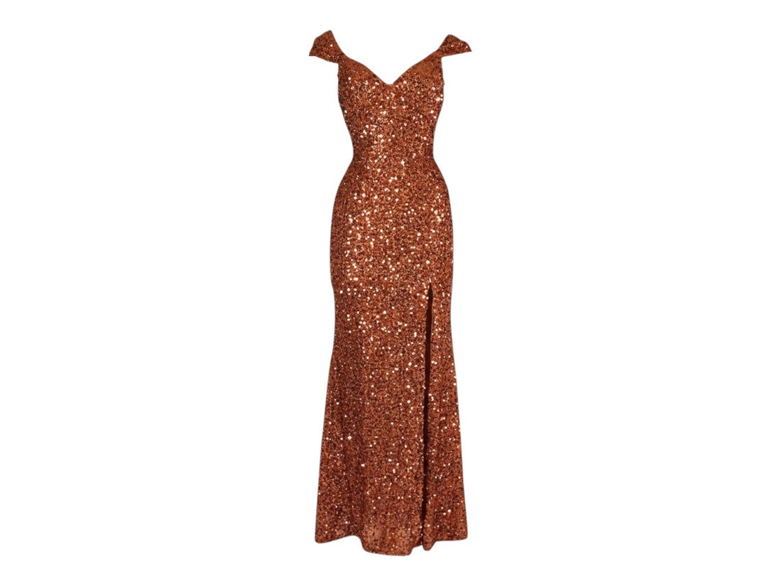 Brilla con elegancia, viste este moderno vestido de fiesta sin mangas con lentejuelas.
