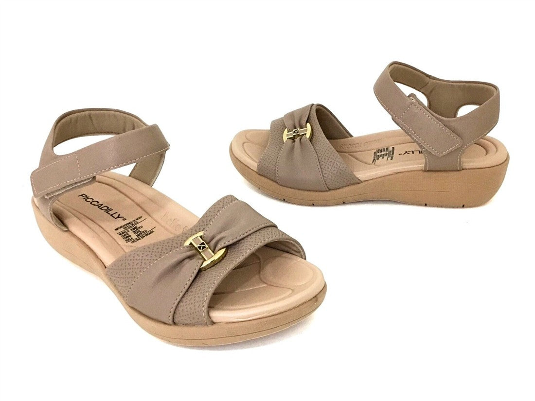 Descubre la elegancia y comodidad de las sandalias cuña PICCADILLY para mujer. Diseñadas en napa, estas sandalias casuales ofrecen un ajuste perfecto gracias a su práctica cinta de velcro. Destaca su detalle dorado en el frente, que aporta un toque sofisticado, mientras que la suela texturizada garantiza estabilidad y estilo. Disponibles en tallas del 21 al 25, son ideales para cualquier ocasión. Renueva tu calzado con la combinación perfecta de moda y confort.