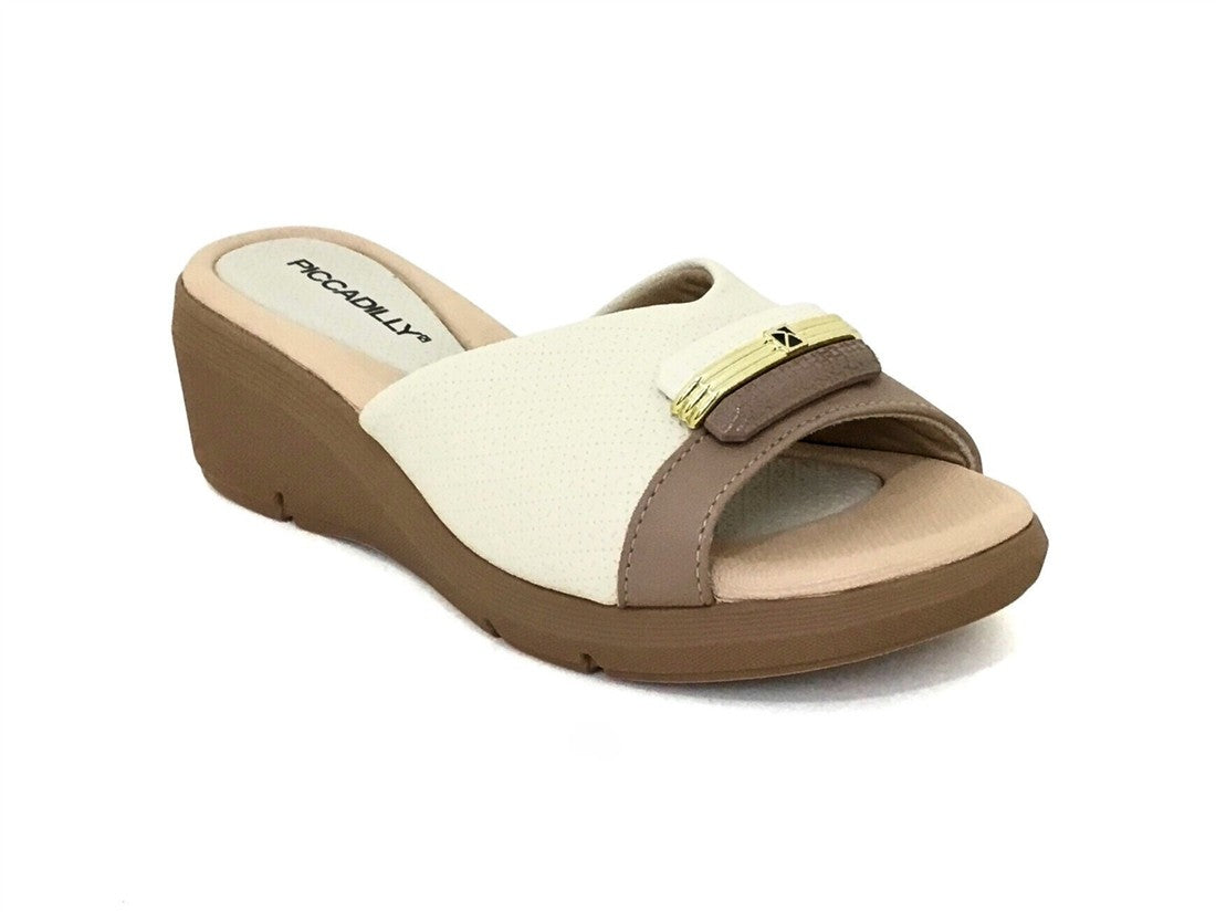 Descubre la elegancia y comodidad en cada paso con las sandalias cuña para dama de PICCADILLY, modelo 540395. Perfectas para un look casual, estas sandalias están elaboradas con napa stretch, garantizando un ajuste excepcional en tallas del 21 al 25. Su diseño incluye una textura única, un llamativo detalle dorado en el frente y una suela dentada que aporta estilo y seguridad. Ideales para la mujer moderna que busca destacar con cada movimiento.