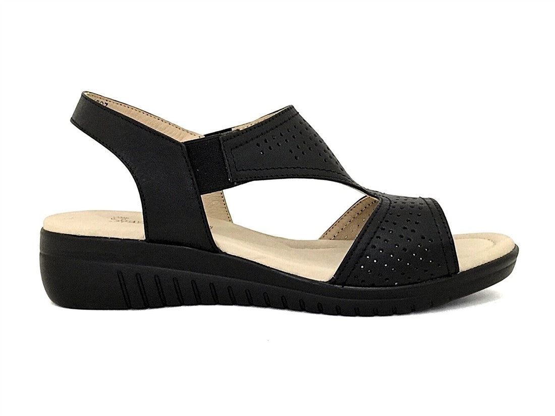 SANDALIA CUÑA AJUSTE CON ELASTICOS LATERALES DISEÑO CON CORTES LASER DE SUELA ANTIDESLIZANTE