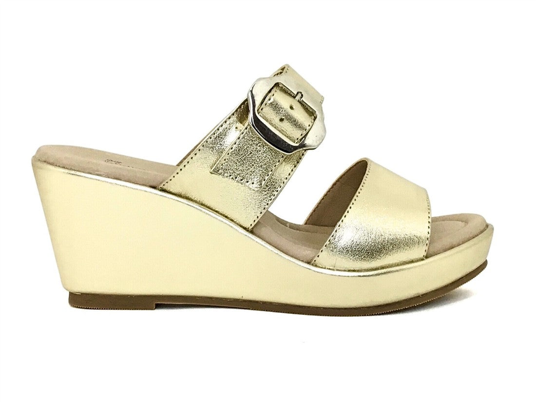 SANDALIA PLATAFORMA SISTEMA DESTALONADO AJUSTE CON HEBILLA EN EMPEINE DE DISEÑO METALICO