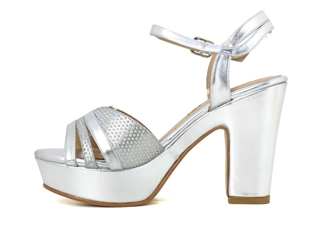 SANDALIA PLATAFORMA DE APARIENCIA METALICA CON CINCHO Y HEBILLA AJUSTABLE