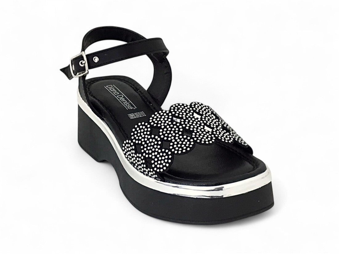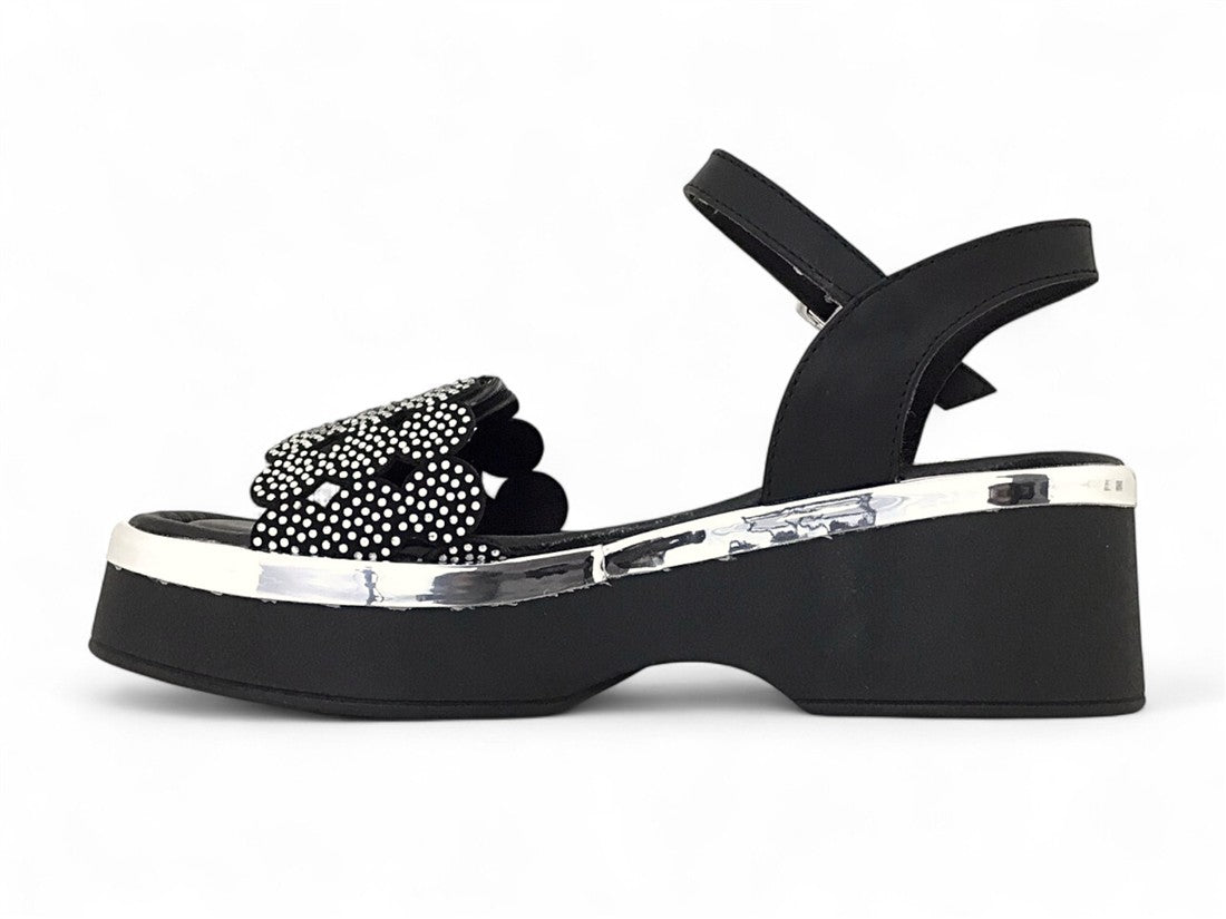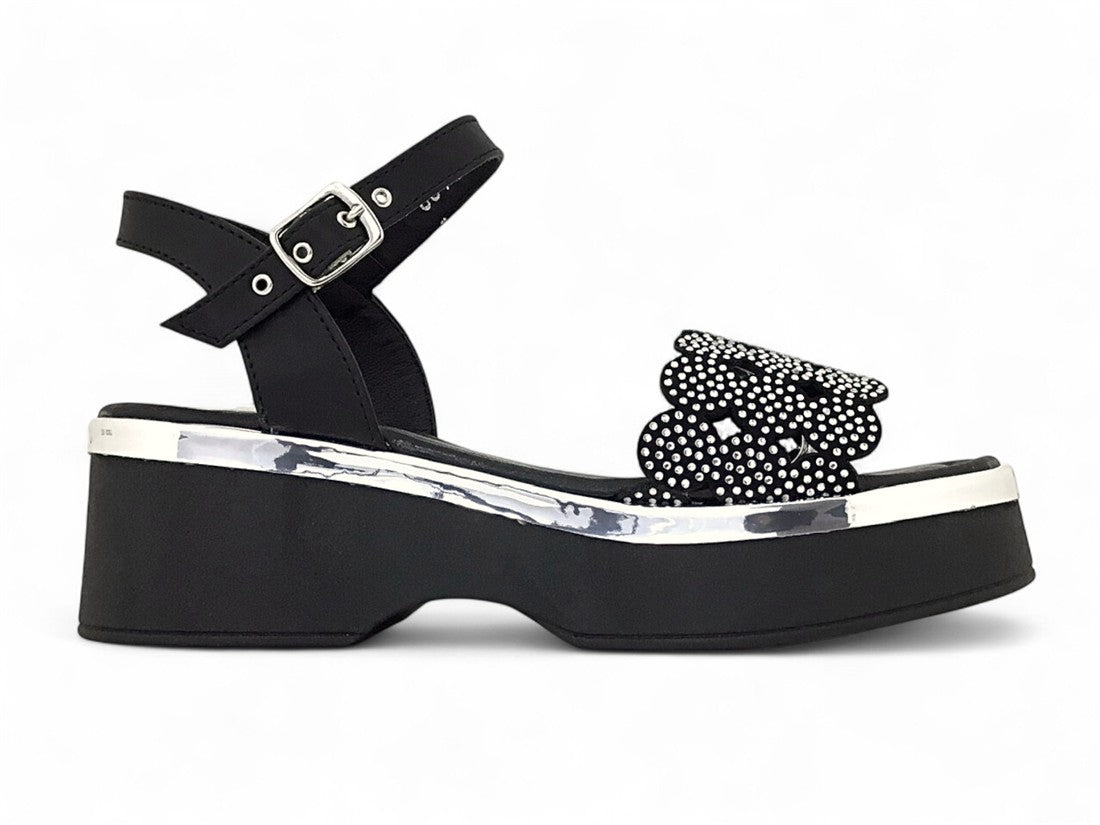 SANDALIA CUÑA CINCHO DE HEBILLA DISEÑO CON PEDRERIA BRILLANTEA AL FRENTE
