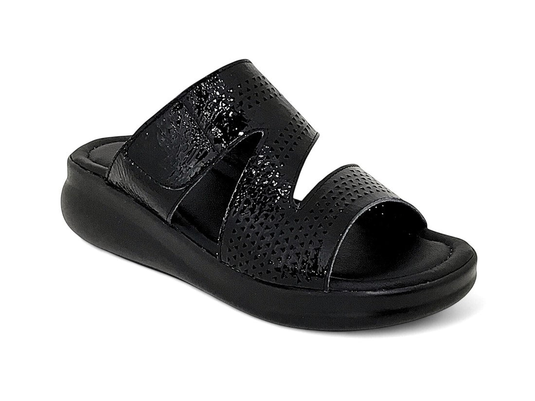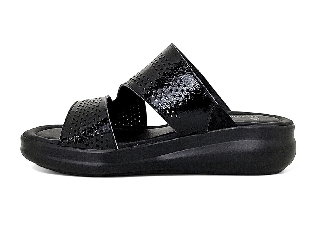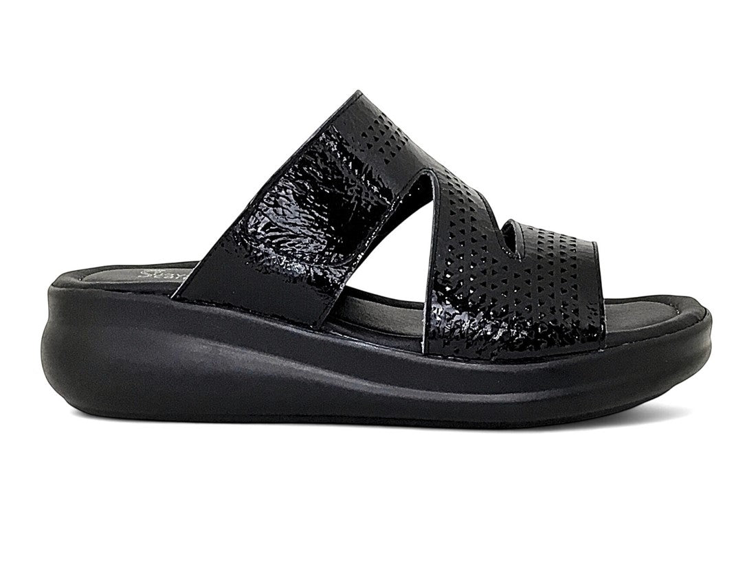 SANDALIA CUÑA CON ELASTICO LATERAL ESCONDIDO DETALLES EN CORTES LASER Y SUELA ANTIDESLIZANTE