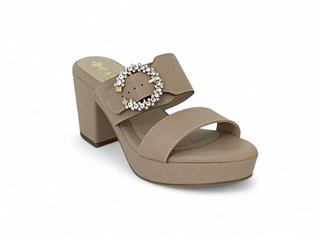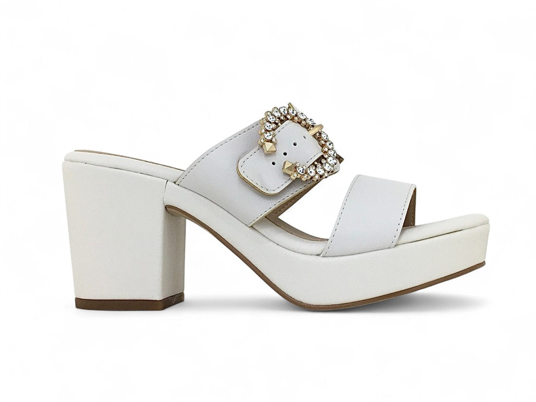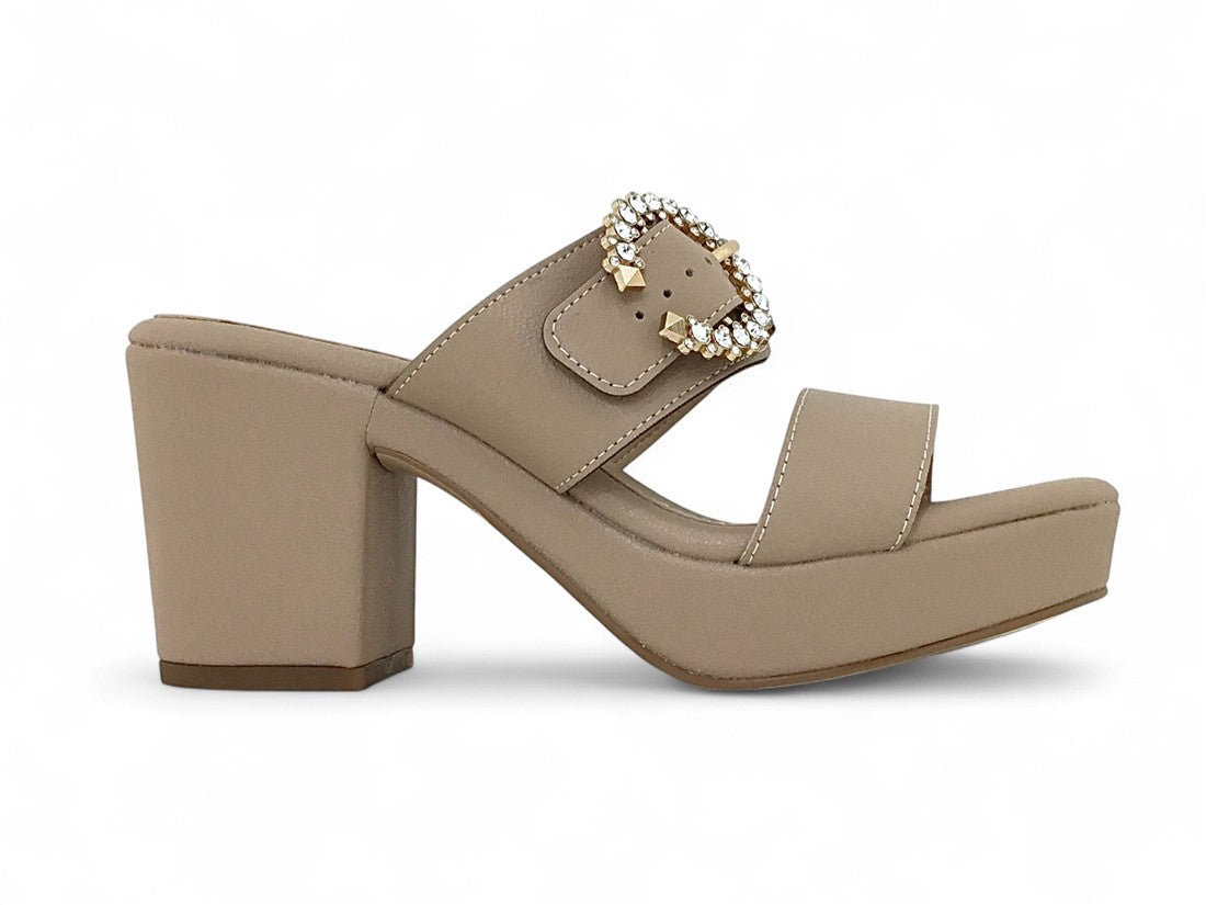 SANDALIA PLATAFORMA AJUSTE CON HEBILLA GRANDE METALICA DE PIEDRAS BRILLANTES EN EMPEINE