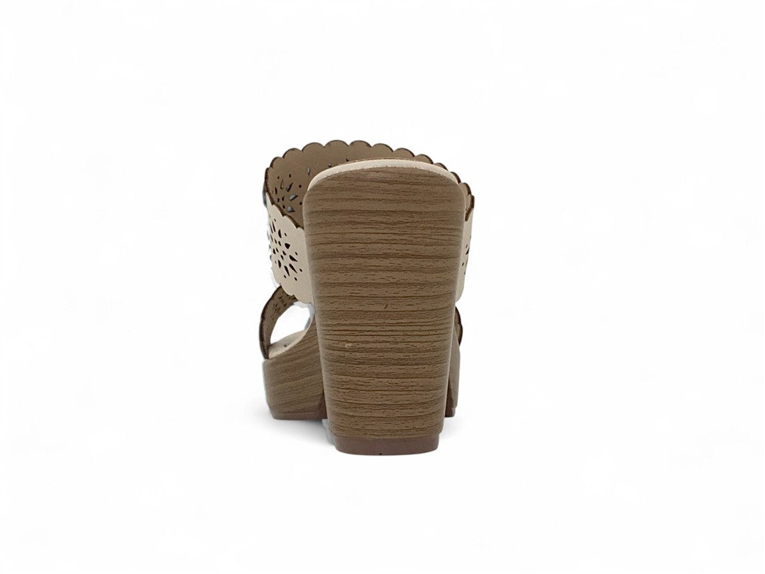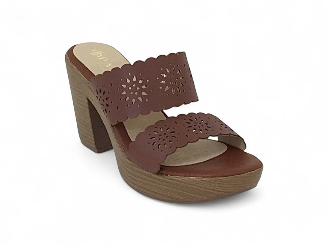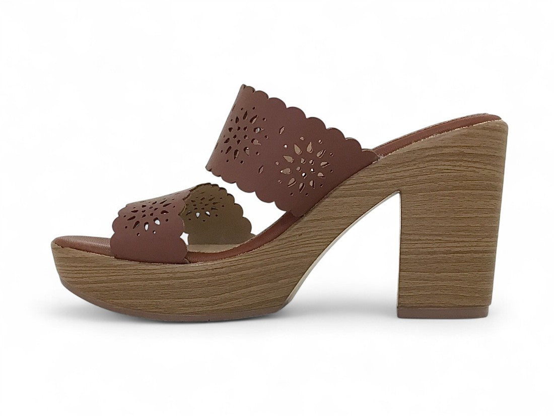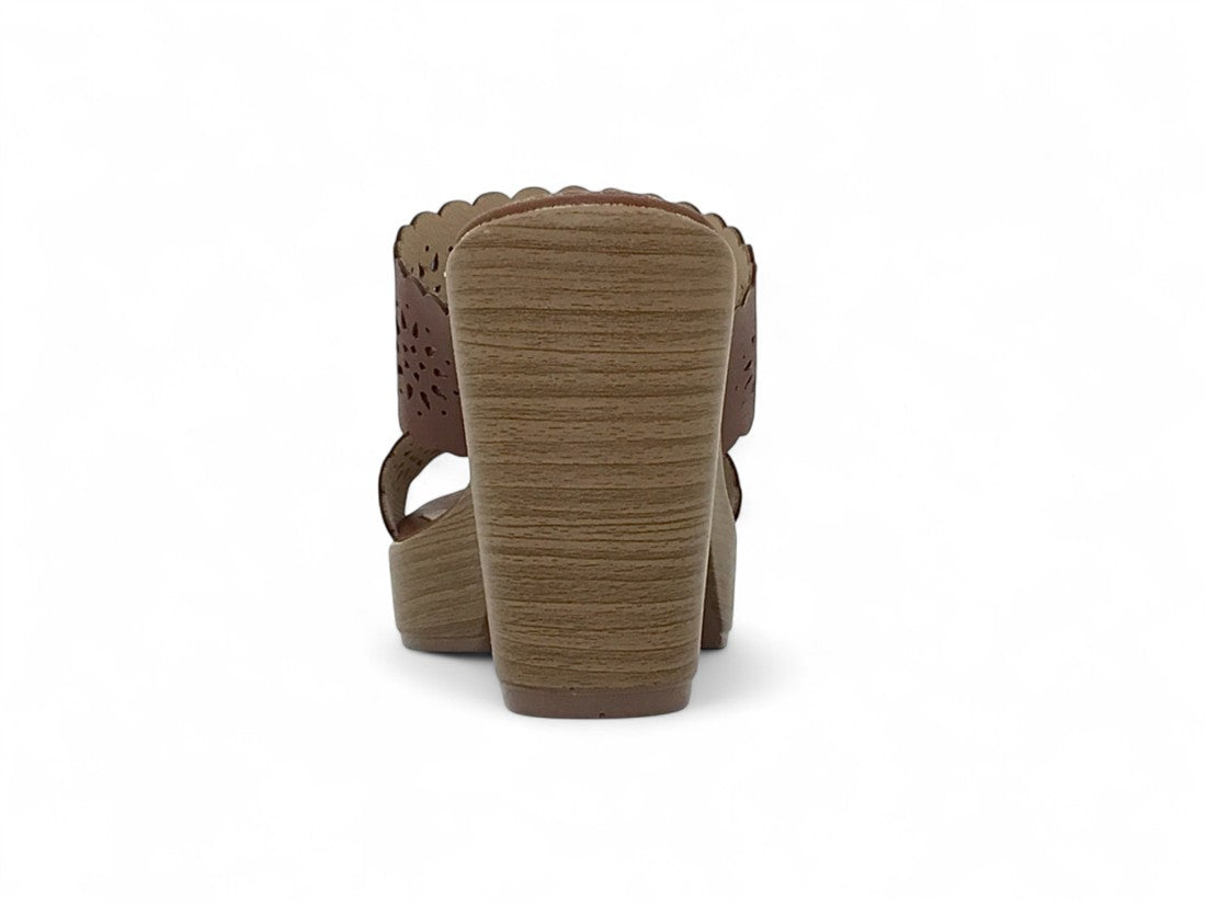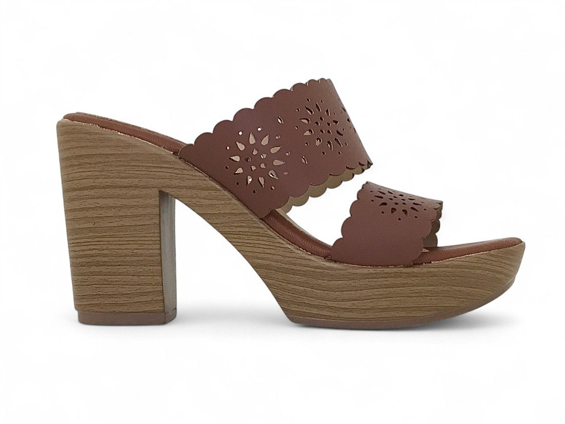 SANDALIA PLATAFORMA TACON AMADERADO DISEÑO DE TIRAS ANCHAS CON CORTES LASER
