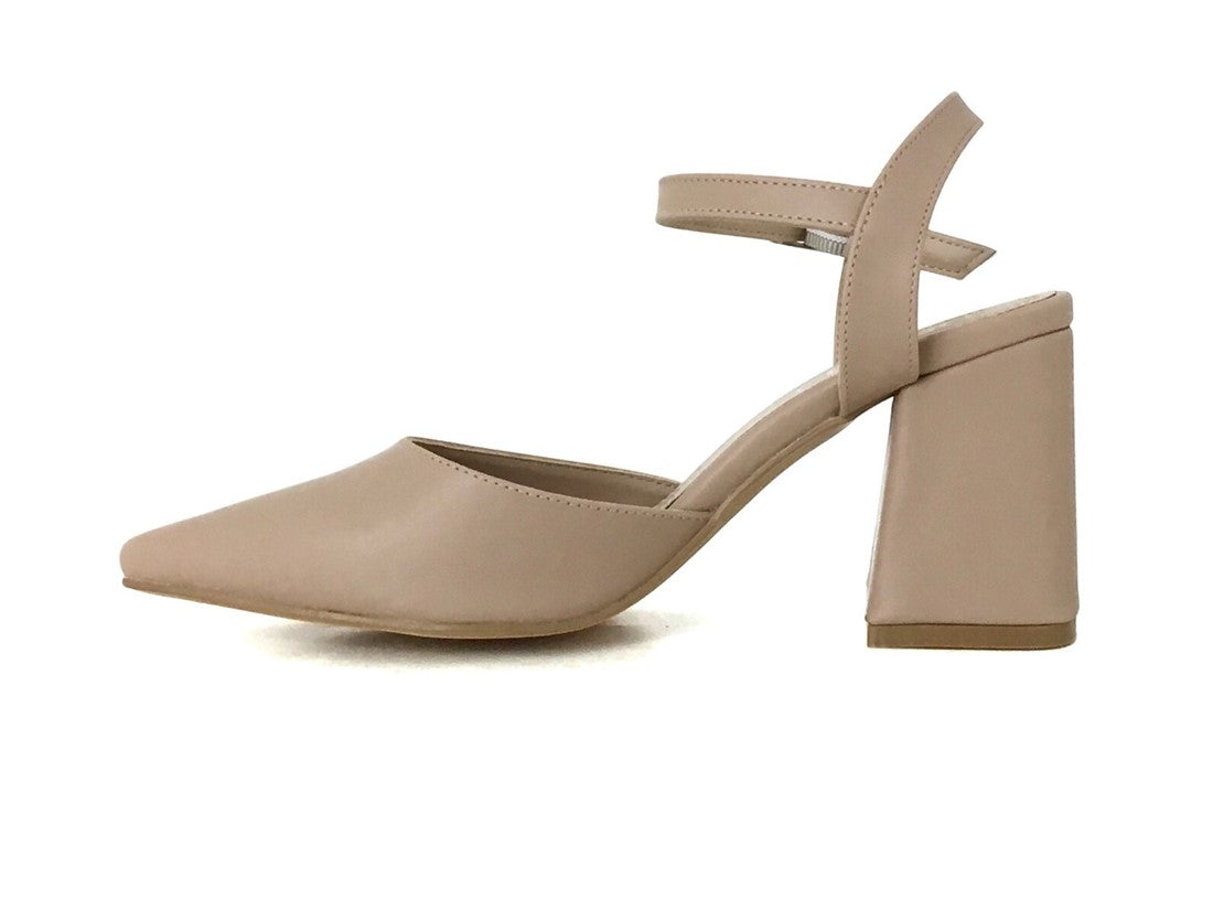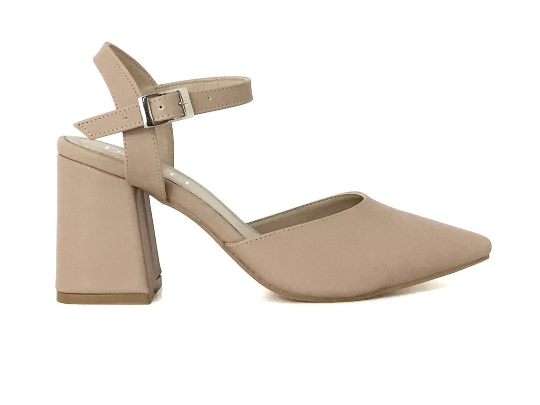 SANDALIA TACON GRUESO CON PUNTERA TRIANGULAR Y AJUSTE CON CINCHO DE HEBILLA