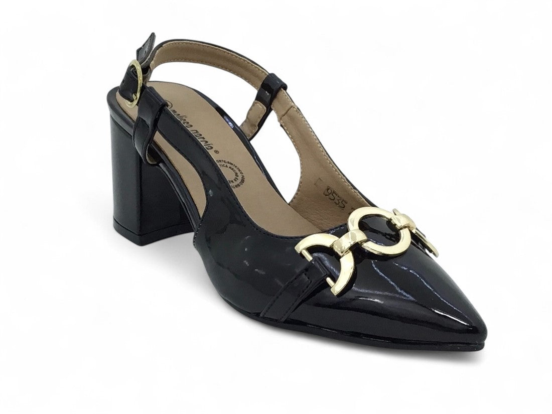 Descubre el estilo y la elegancia con las sandalias de tacón bajo de Melissa García. Perfectas para cualquier ocasión casual, estas sandalias son un complemento esencial para cualquier guardarropa femenino. Confeccionadas en charol, cuentan con un diseño de correa ajustable y una hebilla redonda que asegura un ajuste perfecto. La puntera triangular y el detalle metálico añaden un toque sofisticado a cada paso. Disponibles en tallas del 22 al 27, son el equilibrio ideal entre comodidad y moda.