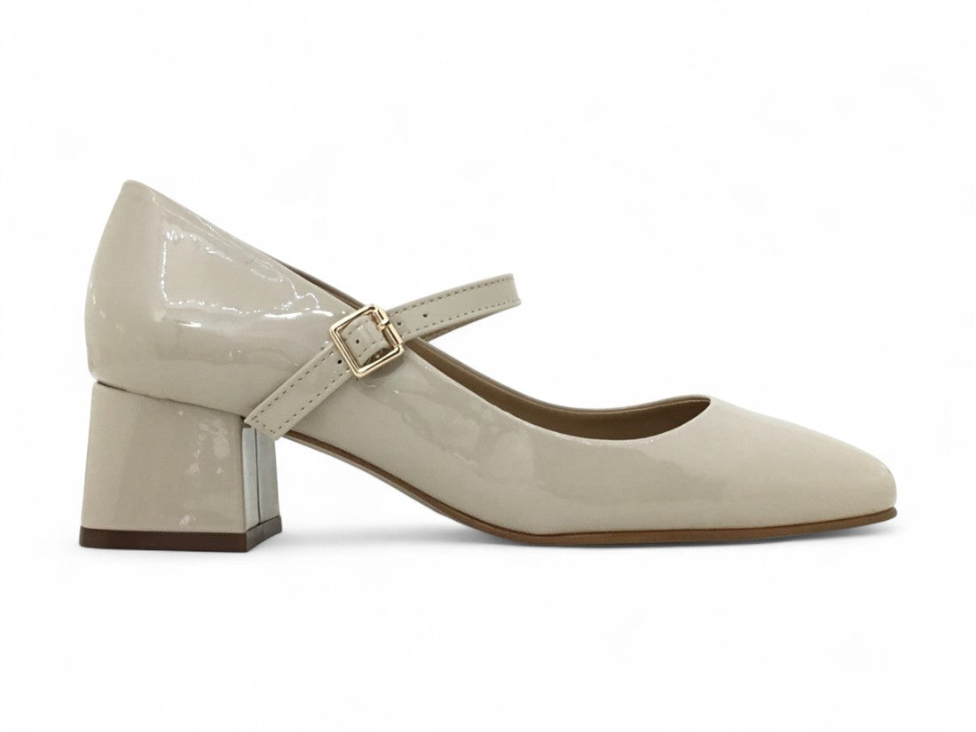 Zapato casual de tacón cuadrado con correa de hebilla y puntera cuadrada, ideal para mujer moderna.