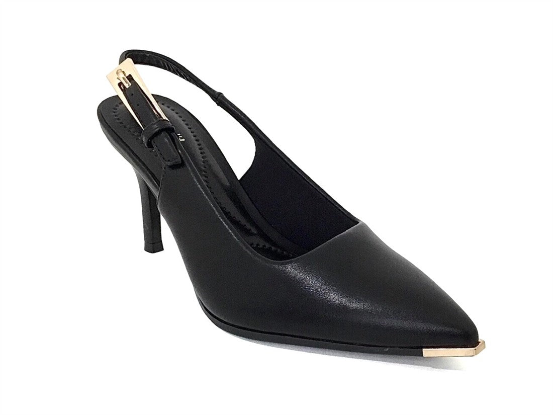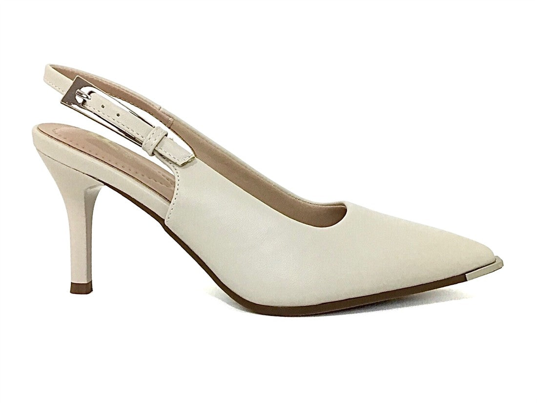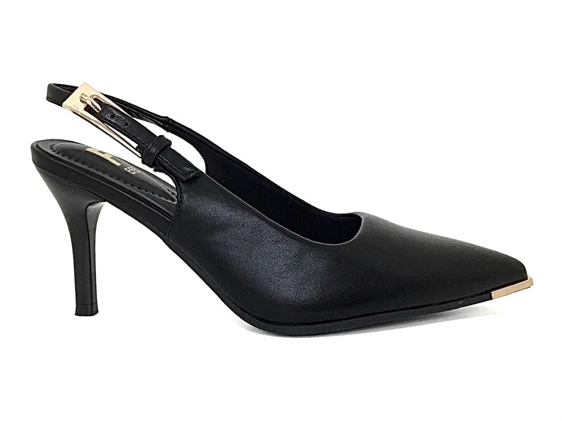 Zapatilla EFE elegante, punta fina, detalle metálico y talón escotado para dama.