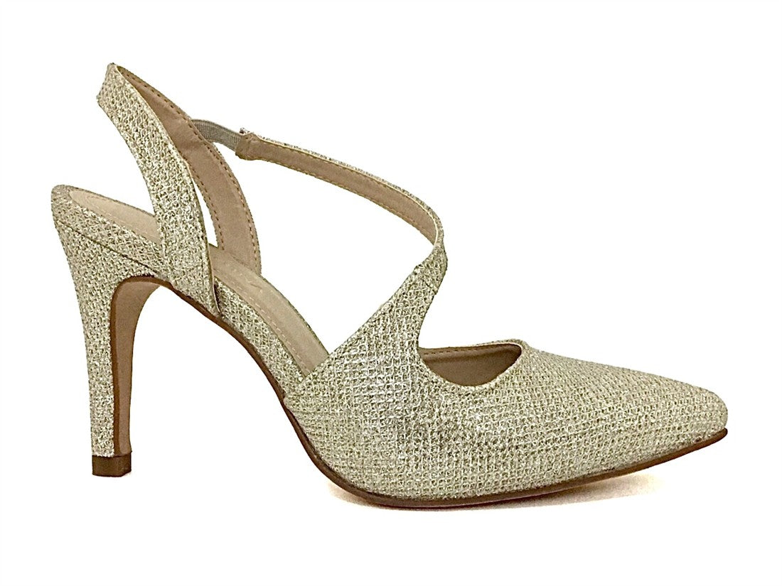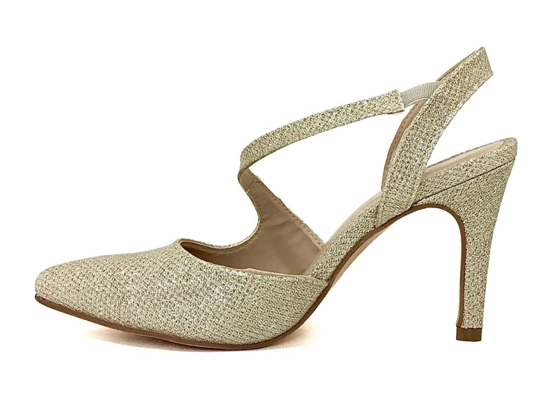 Brilla con luz propia en tu próximo evento con estas espectaculares zapatillas tipo slingback. Este diseño combina una silueta clásica y estilizada con un acabado deslumbrante que captura todas las miradas. Son el complemento perfecto para transformar un look sobrio en uno de gala, ofreciendo elegancia y sofisticación sin esfuerzo.