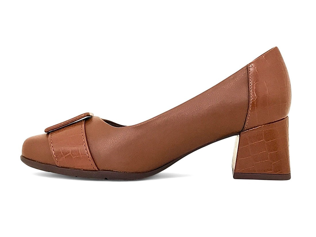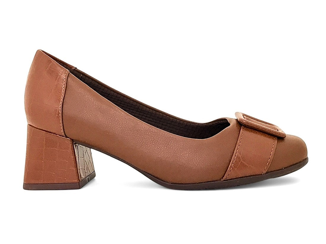 ZAPATO TACON CUADRADO MEDIO DISEÑO CON TEXTURA Y DETALLE DE HEBILLA AL FRENTE Y SUELA ANTIDESLIZANTE