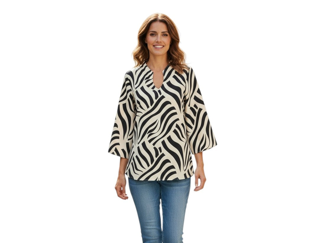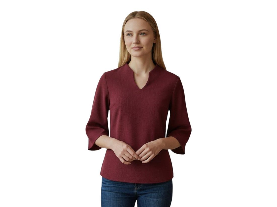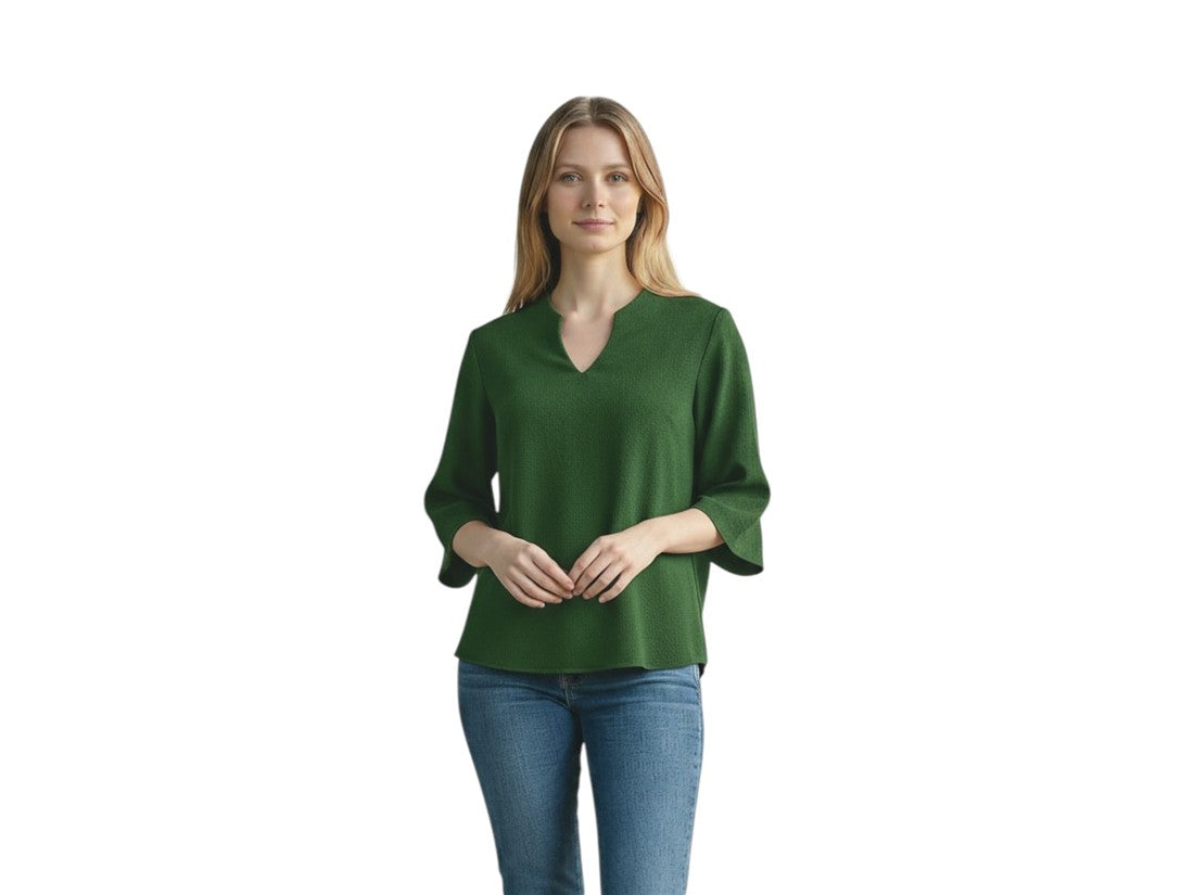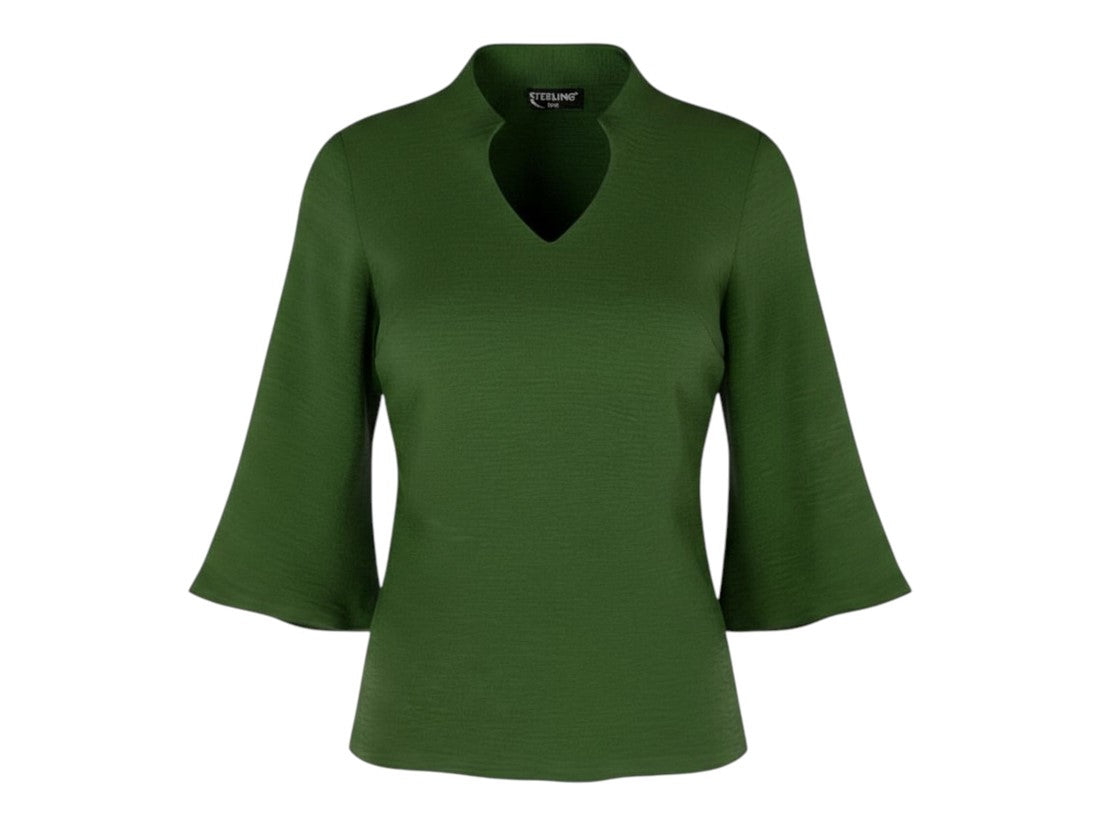 Blusa casual para mujer con manga 3/4 acampanada y escote en V de la marca STERLING.