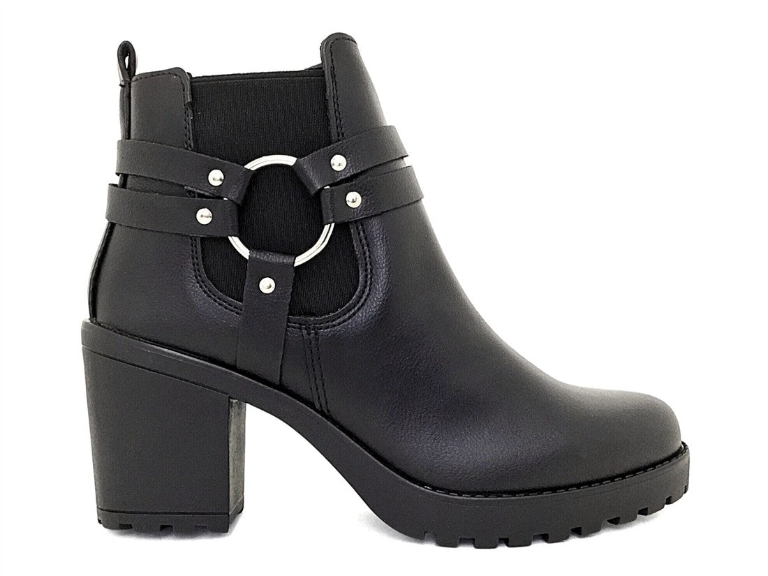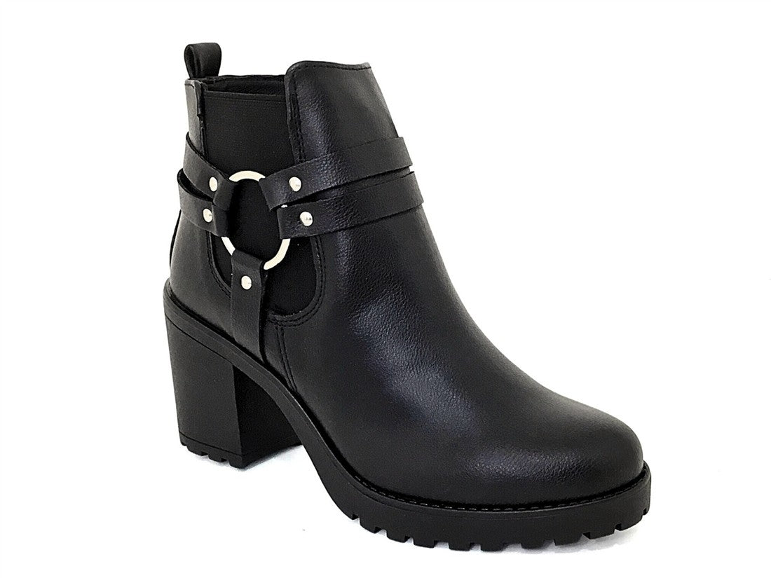 BOTIN TACON CUADRADO AJUSTE ELASTICO Y CIERRE LATERAL DETALLE CON ARO METALICO Y REMACHES