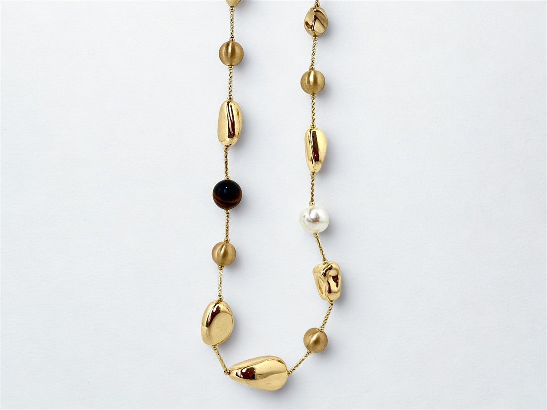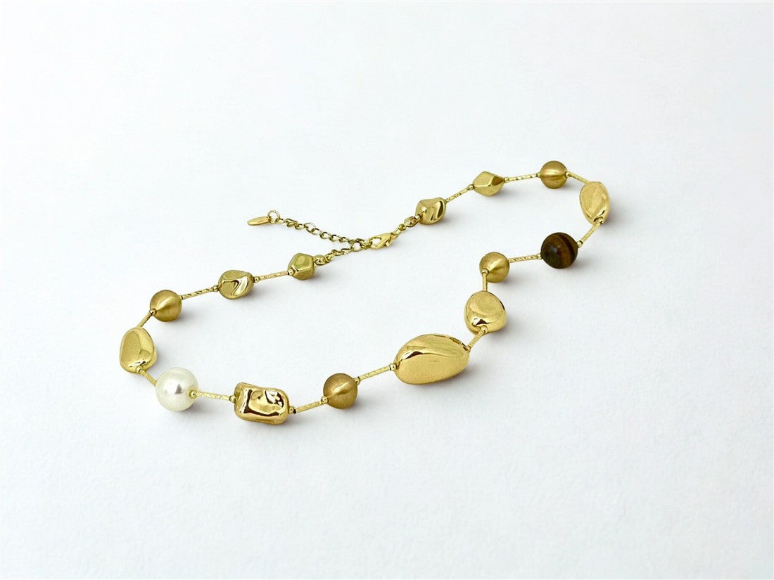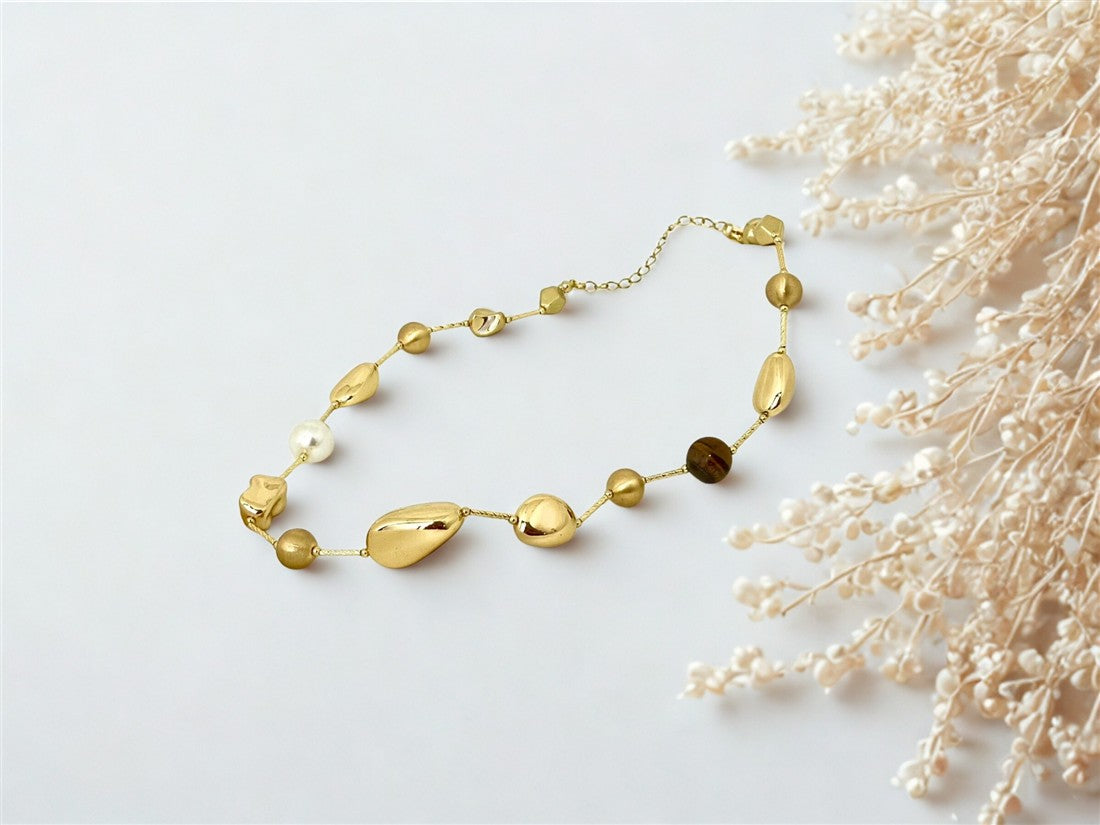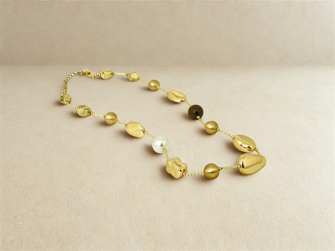 COLLAR DAMA ACABADO EN ACERO DISEÑO CON CUENTAS Y PIEDRAS