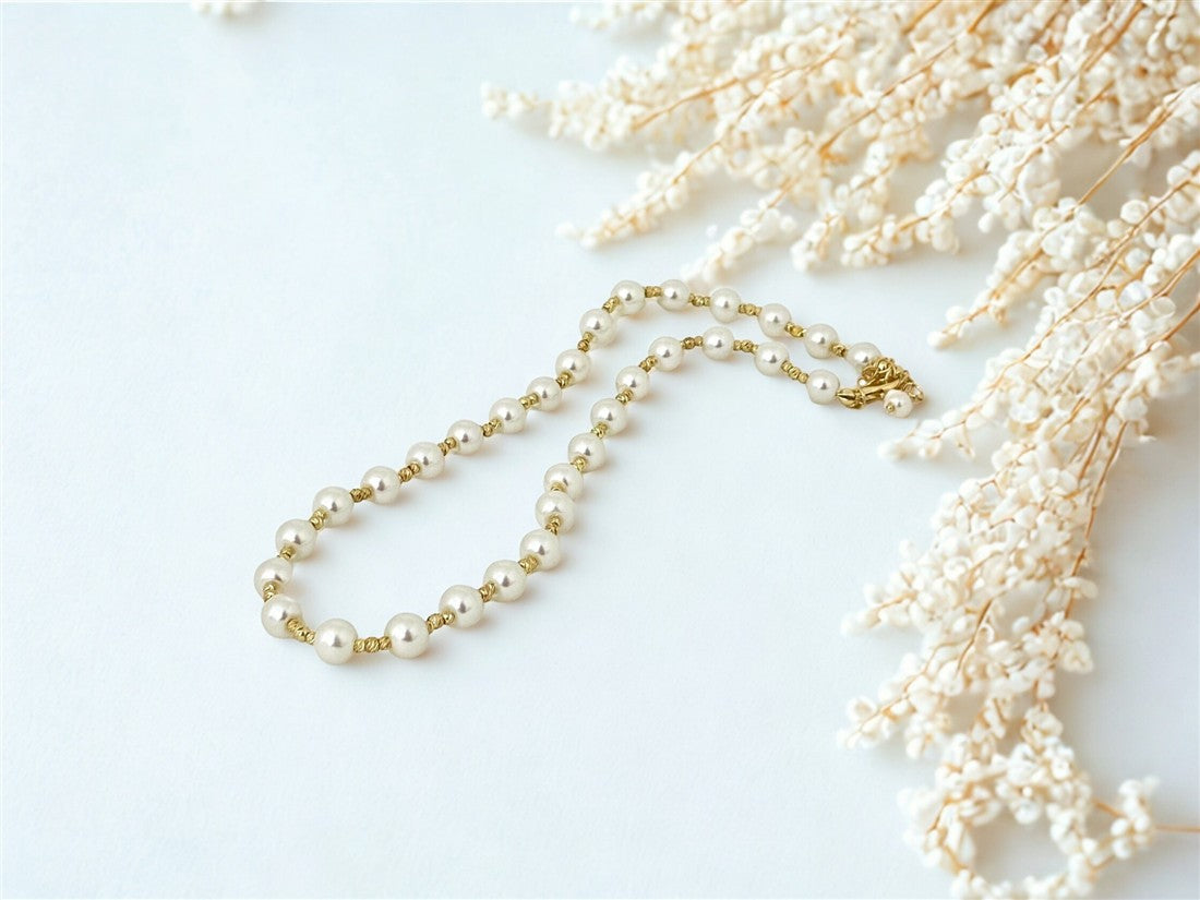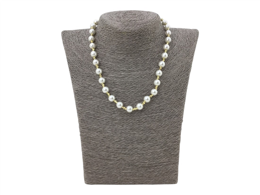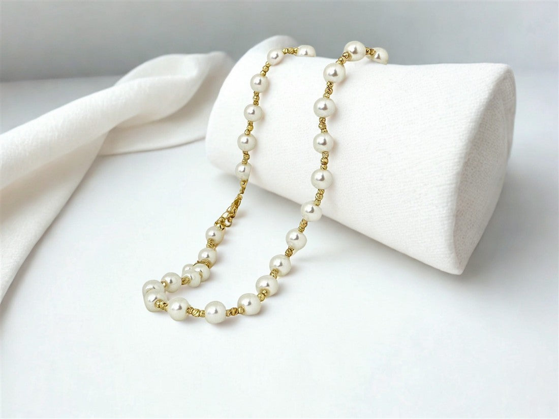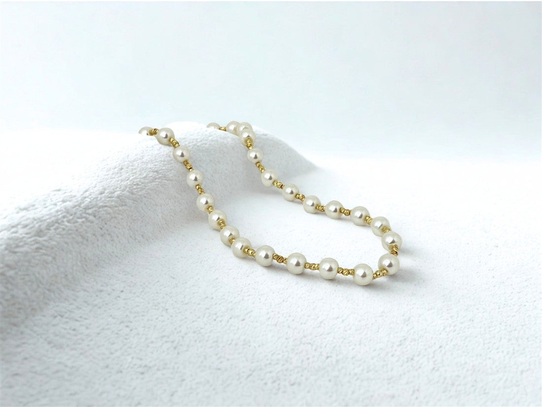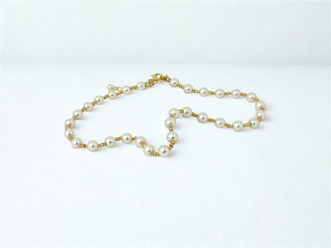 COLLAR DAMA ACABADO EN ACERO DETALLES DE PERLAS Y CUENTAS DORADAS