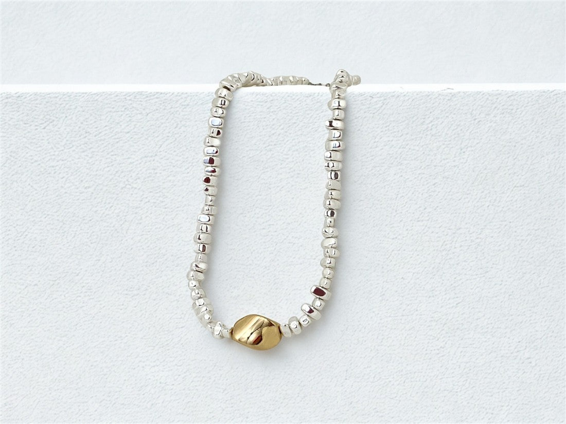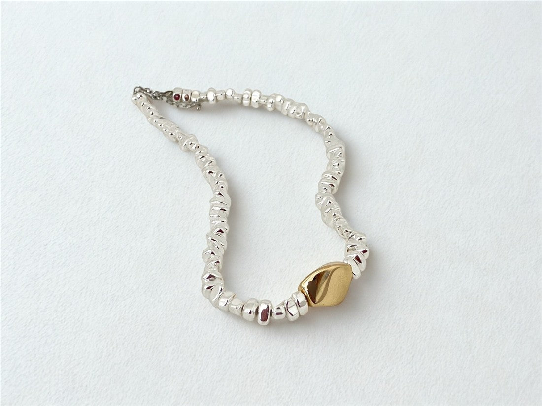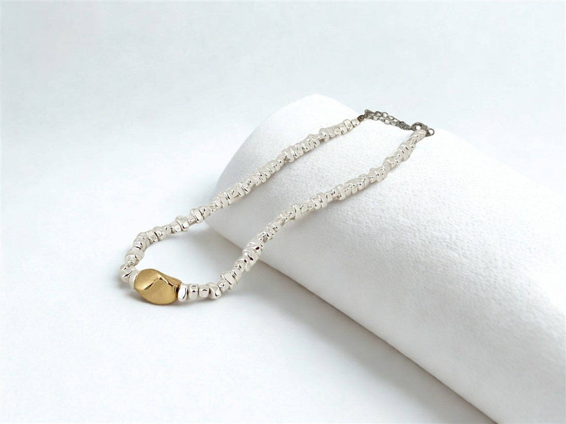 COLLAR DAMA ESTILO GARGANTILLA DE CUENTAS ASIMETRICAS Y DIJE DORADO AMORFO
