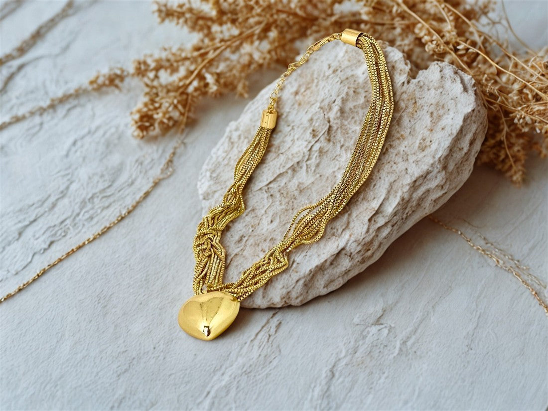 COLLAR DAMA ESTILO GARGANTILLA DISEÑO CON MULTI CADENAS Y DIJE DE CORAZÓN