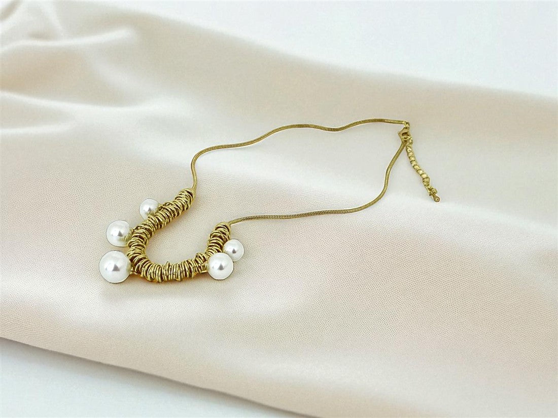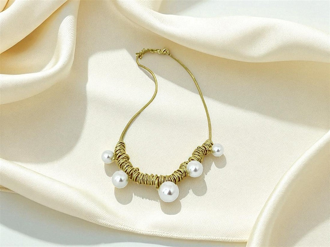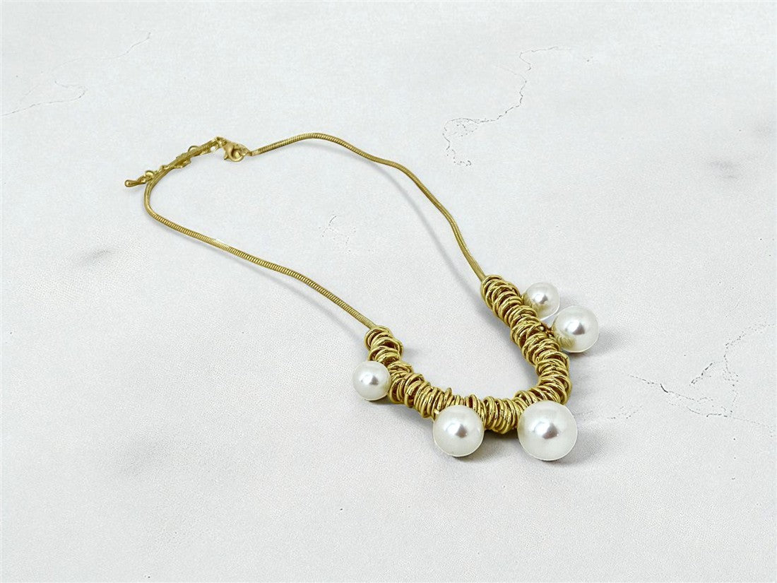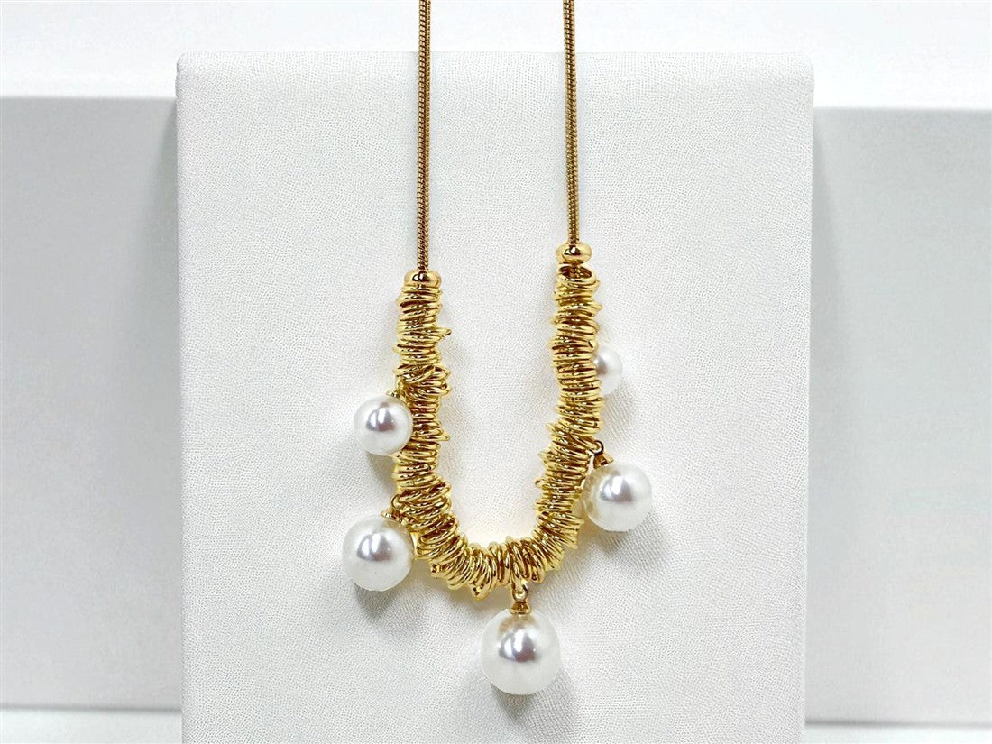 COLLAR DAMA DISEÑO DE CADENA CON AROS Y PERLAS COLGANTES