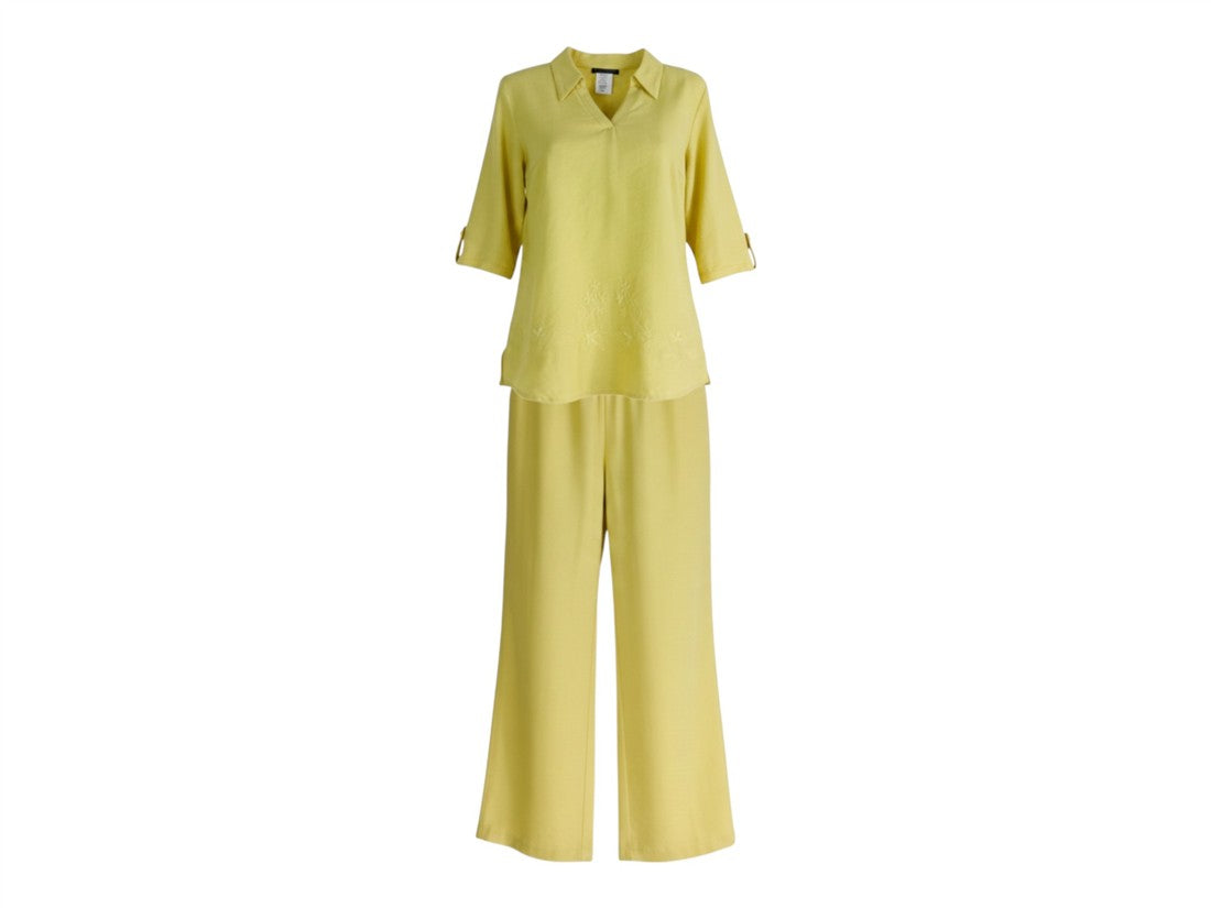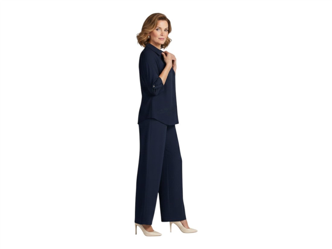 Conjunto casual de túnica y pantalón con mangas 3/4 para mujer, diseño práctico y elegante.