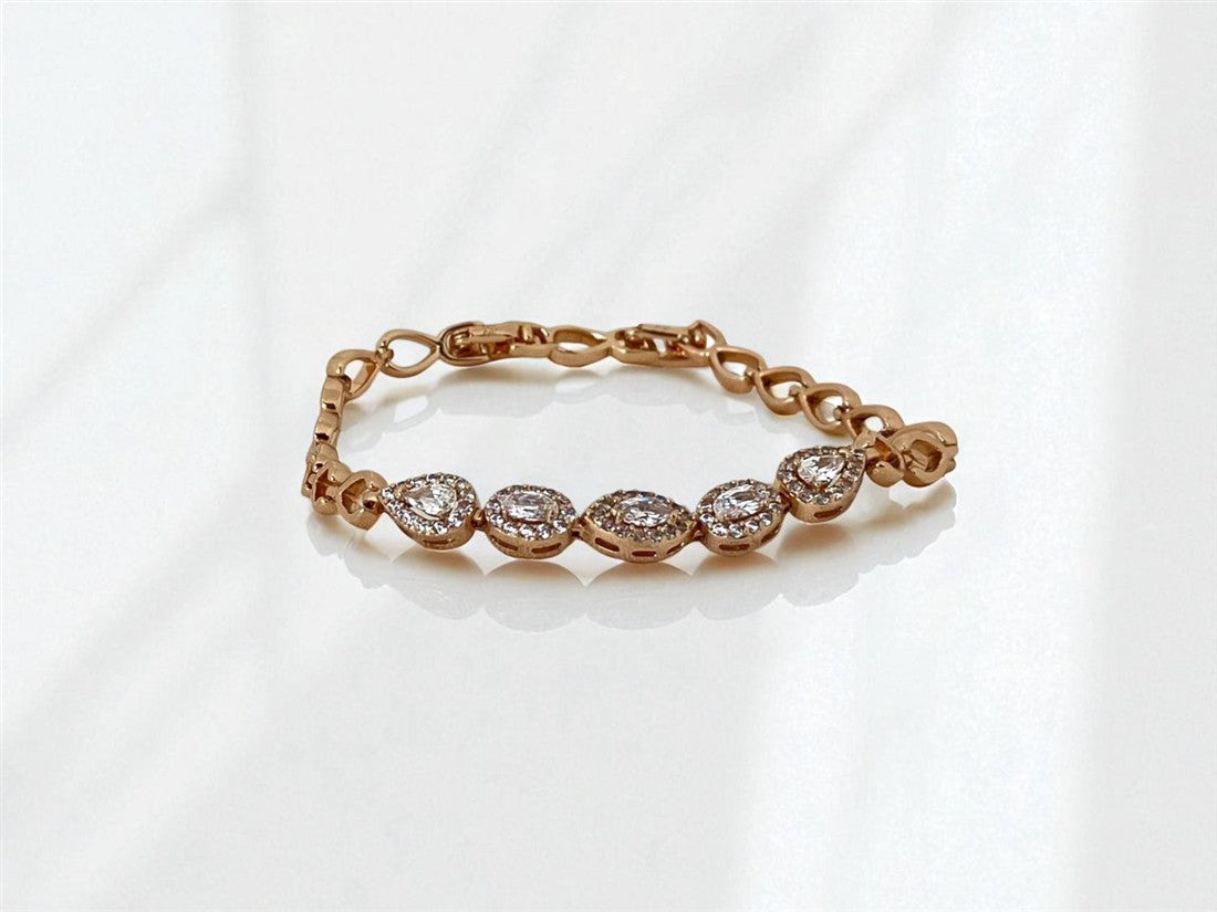 PULSERA DAMA DISEÑO DE LAGRIMAS CON PIEDRAS BRILLANTES DE DOBLE BROCHE