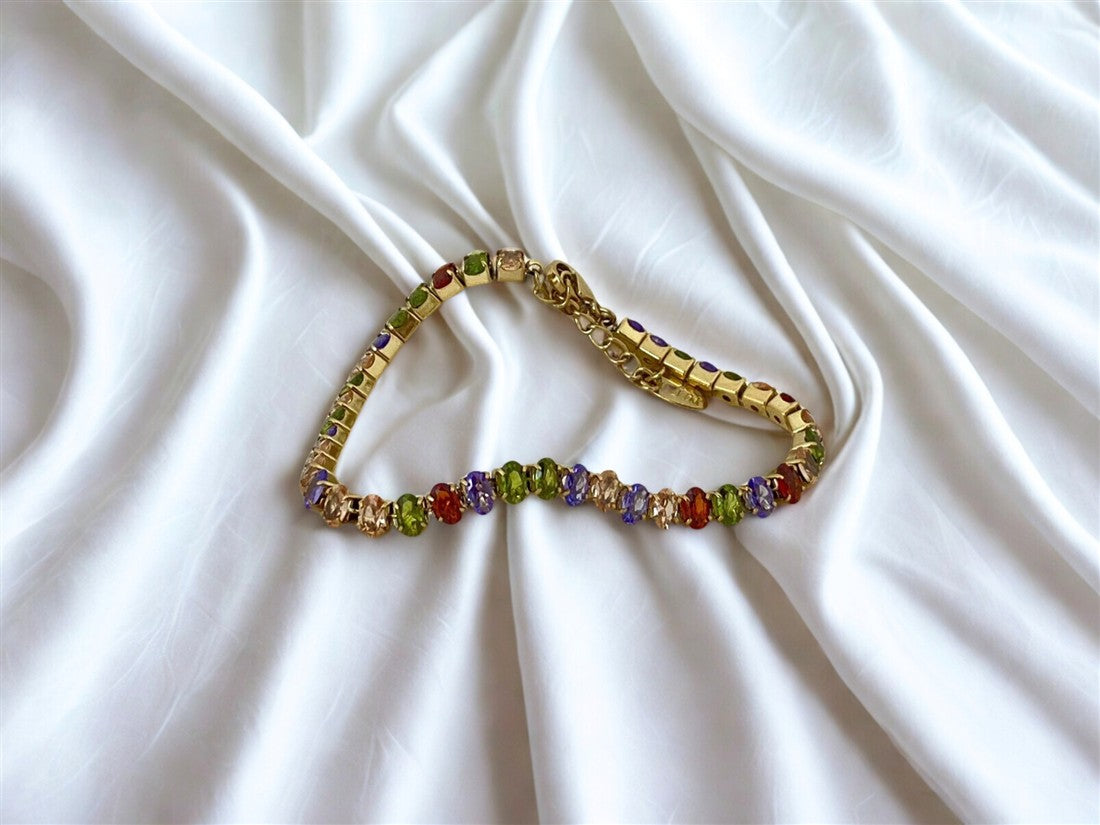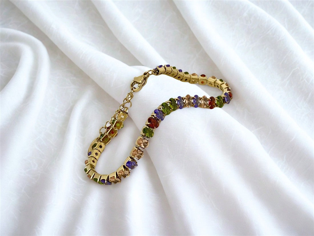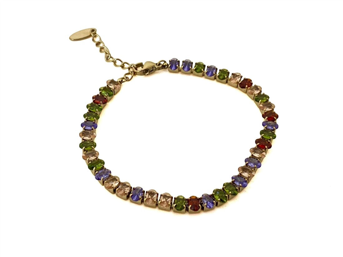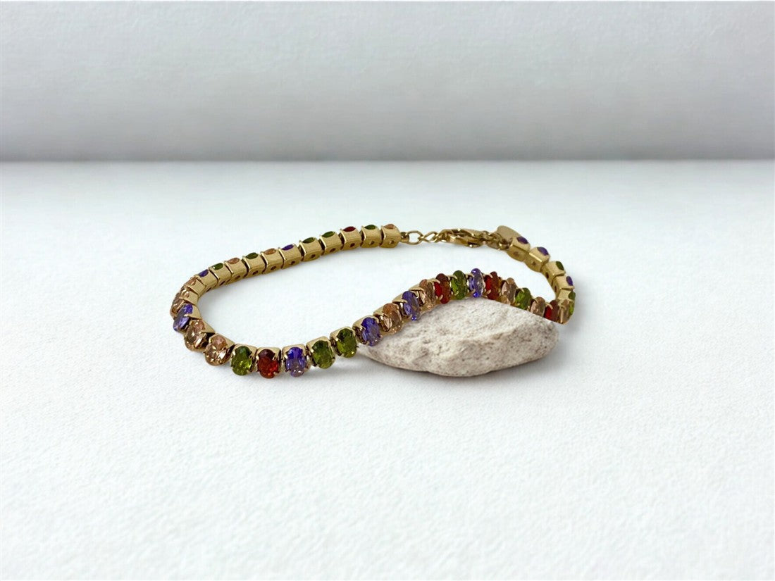 PULSERA DAMA ESTILO BRAZALETE CON PEDRERIA OVALADA DE COLORES CIERRE CON BROCHE DE GANCHO