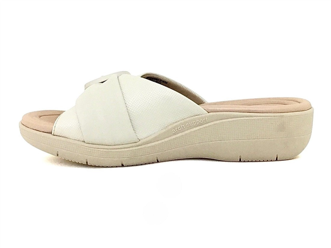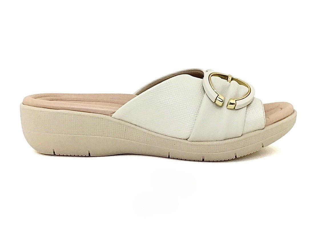 SANDALIA DE CUÑA DISEÑO CON TEXTURAS DETALLE DE HEBILLA REDONDA METALICA Y SUELA ANTIDESLIZANTE