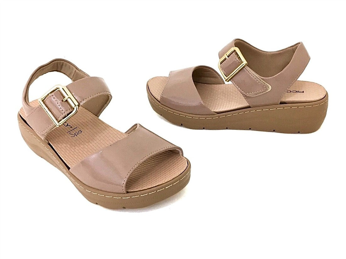 Eleva tu estilo con la sandalia cuña de PICCADILLY, una opción casual perfecta para cualquier ocasión. Fabricada en elegante verniz amassado, esta sandalia ofrece comodidad gracias a su plantilla masajeadora intercambiable. Ajusta fácilmente el cincho con hebilla para un ajuste perfecto. La suela antideslizante proporciona seguridad en cada paso. Disponible en tallas del 21 al 26, es ideal para mujeres que buscan mezclar estilo y confort.