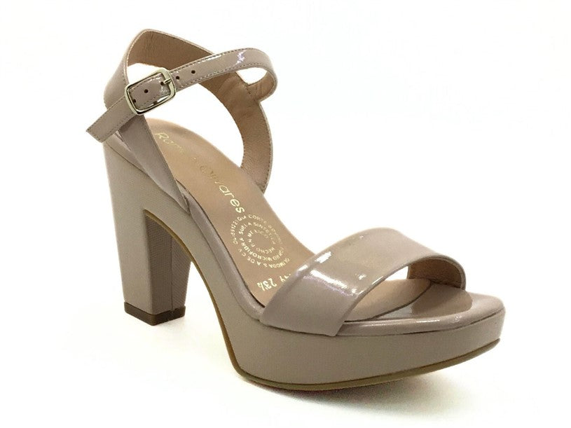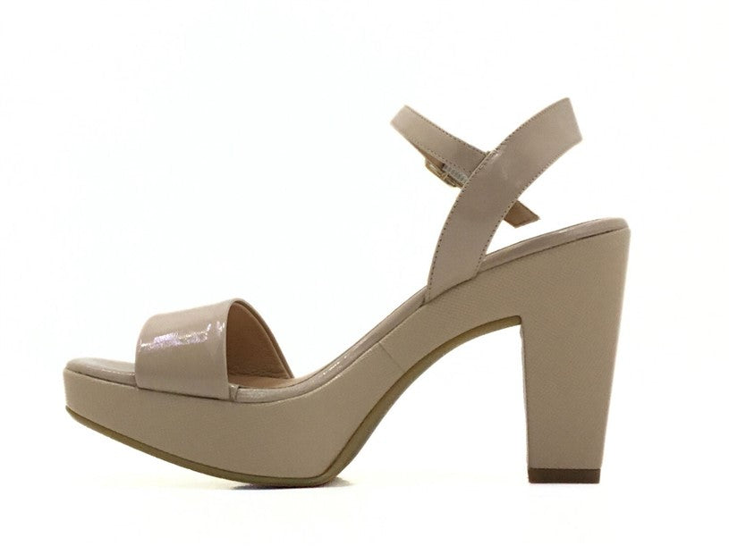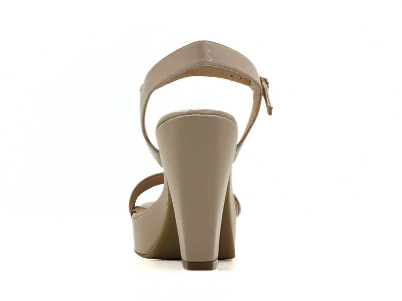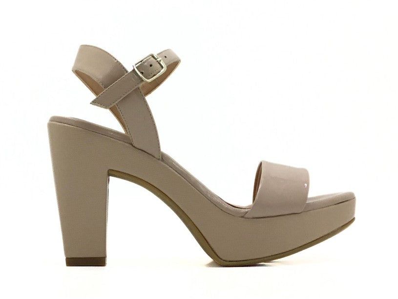 Sandalia Olimoda para dama. Un modelo clásico que puedes usar para lucir cómoda y elegante al mismo tiempo gracias a su apariencia en acabado charol y su diseño con tacón y plataforma.