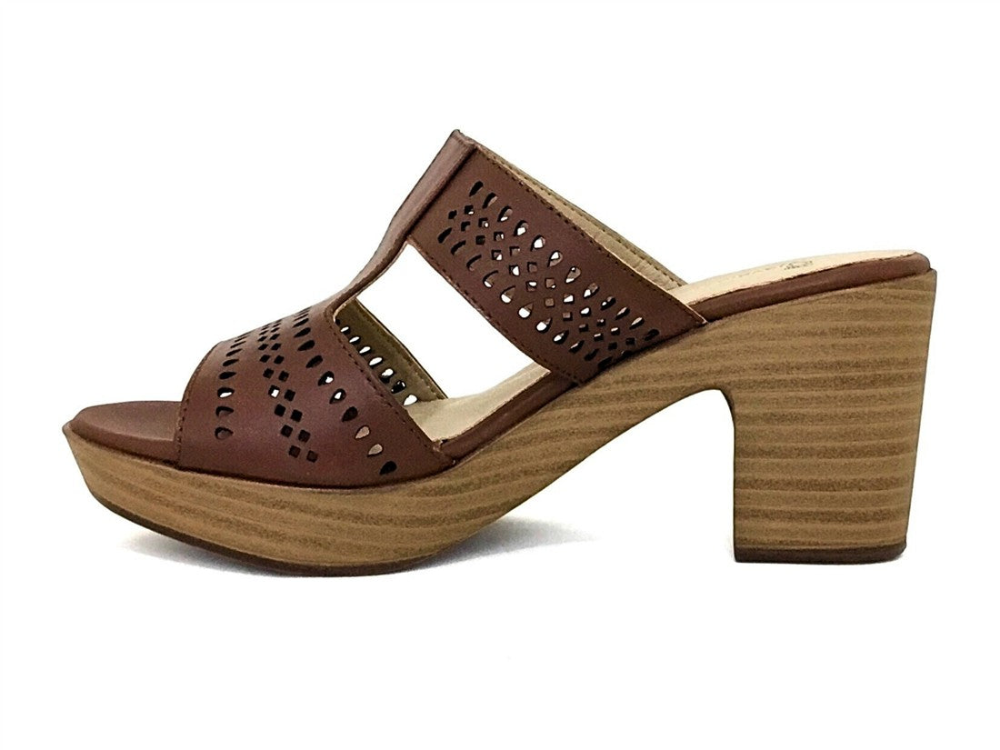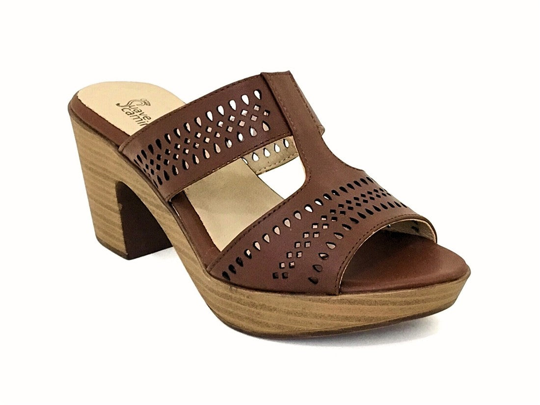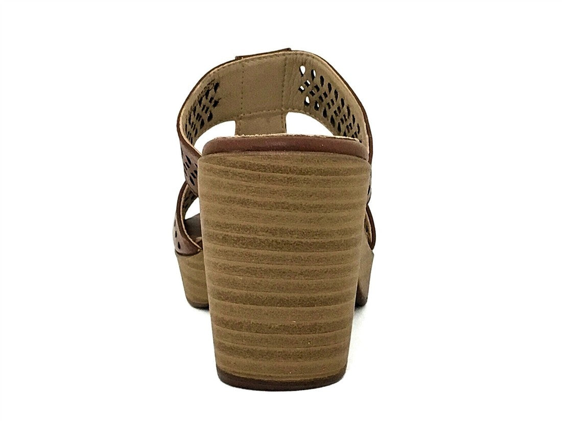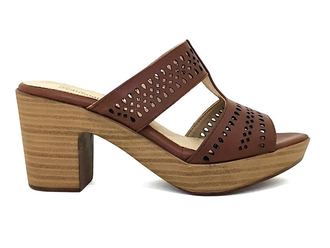 SANDALIA MEDIA PLATAFORMA DE TACON AMADERADO Y DISEÑO CON CORTES LASER
