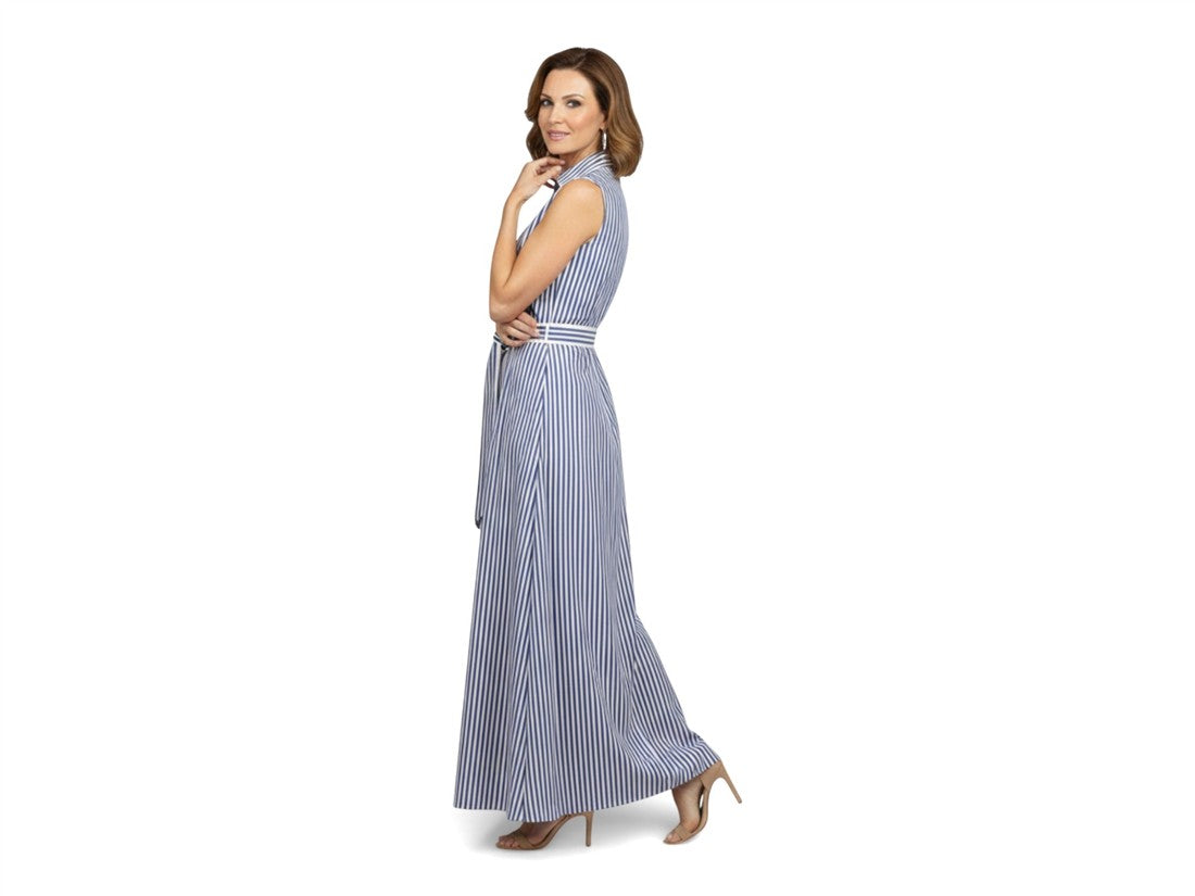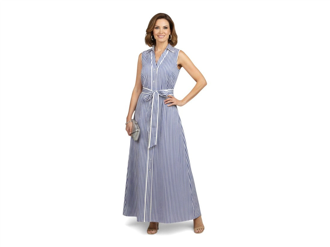 Vestido camisero maxi sin mangas a rayas, ideal para un look casual de la marca Rosys Chic.