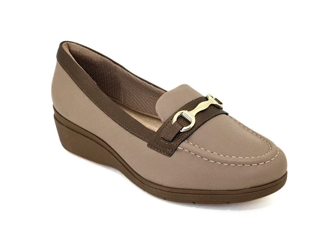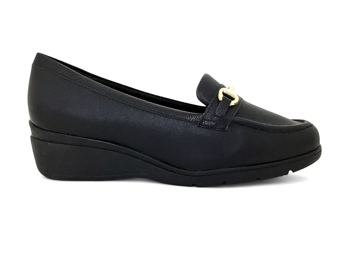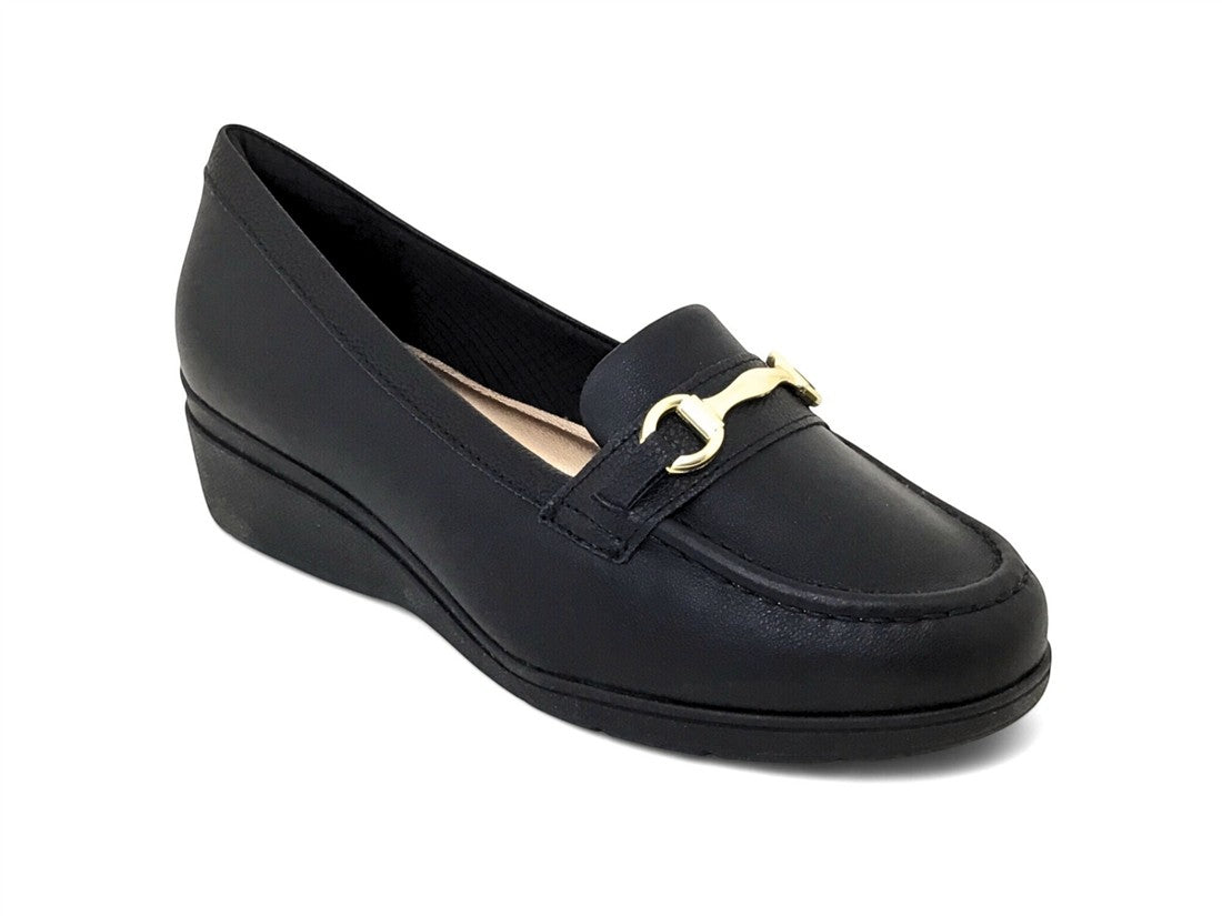 ZAPATO CUÑA DISEÑO CON TEXTURAS DETALLE DE HERRAJE AL FRENTE Y SUELA ANTIDESLIZANTE