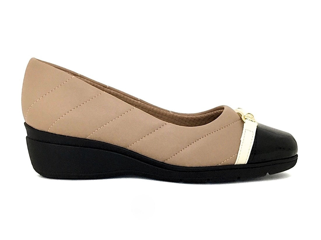 ZAPATO DE CUÑA DISEÑO CON TEXTURAS Y DETALLE METALICO AL FRENTE DE SUELA ANTIDESLIZANTE