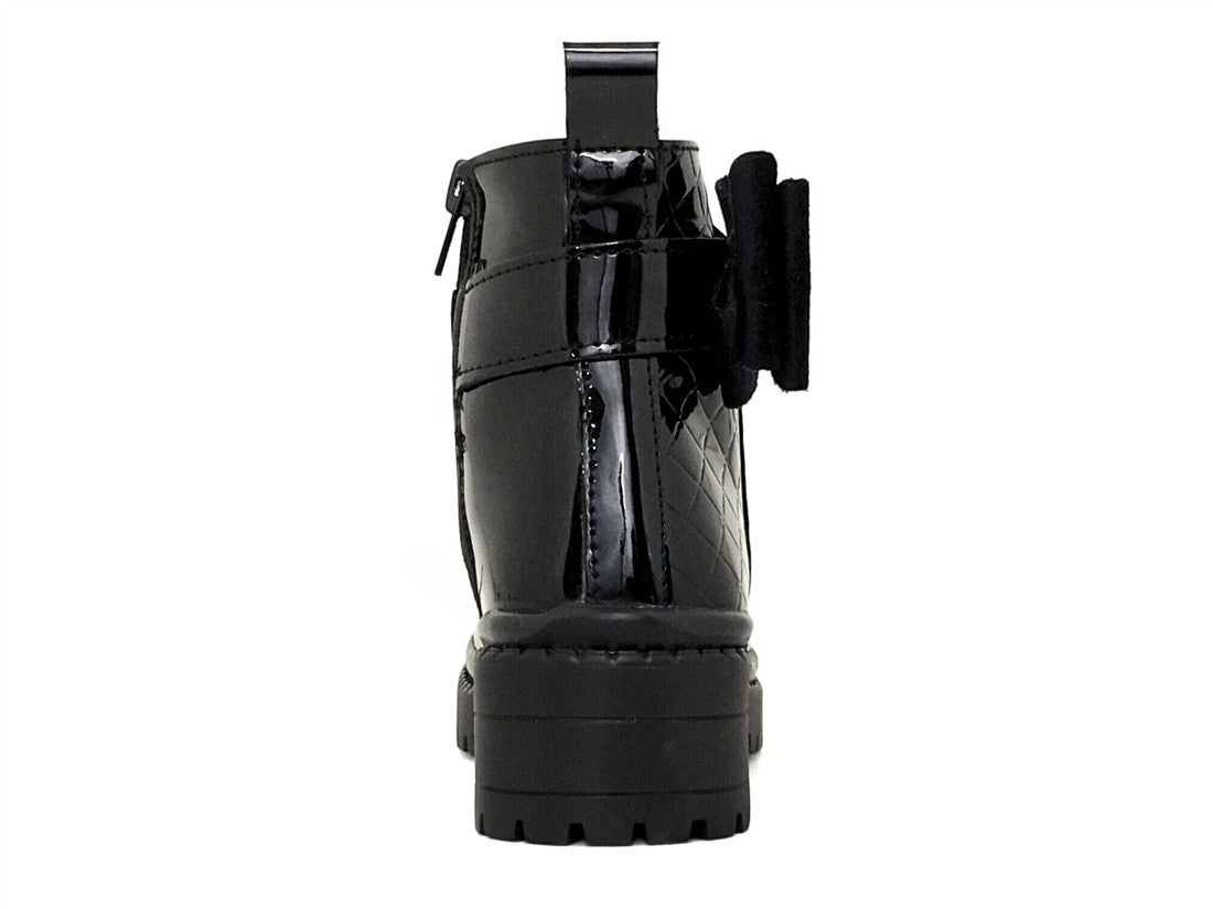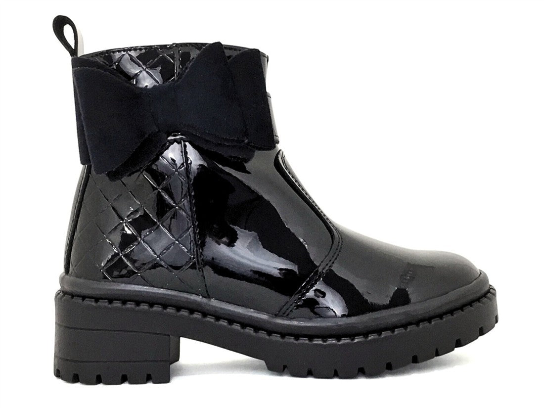 BOTA CASUAL AJUSTE CON CIERRE LATERAL DISEÑO CON TEXTURAS Y DETALLE DE MOÑO DE SUELA TEXTURIZADA
