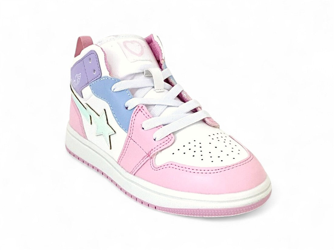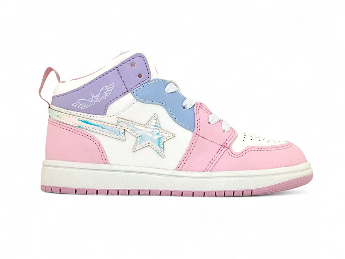 Tenis casuales para niña con diseño de texturas y estrella, estilo único y suela semi dentada.